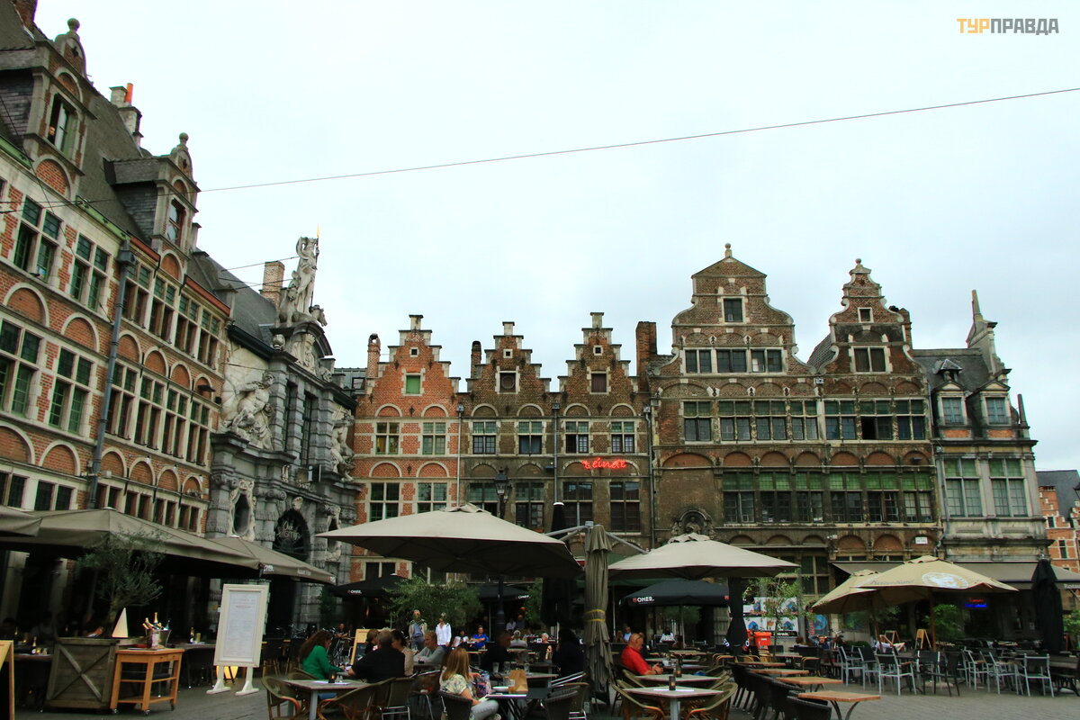 And what beautiful squares here. One of the oldest squares in Ghent is Friday Market Square. And it got its name because a weekly market has been gathering here on Fridays since the 12th century, and this event has already become a tradition. The square is surrounded by buildings dating back to the 15th -19th centuries, and in the center is a monument to Jacob van Arteveld, the leader of the anti-French uprising of the 14th century. The area, surprisingly, is deserted, and we calmly sat here in silence, drinking another bottle of beer with pleasure.