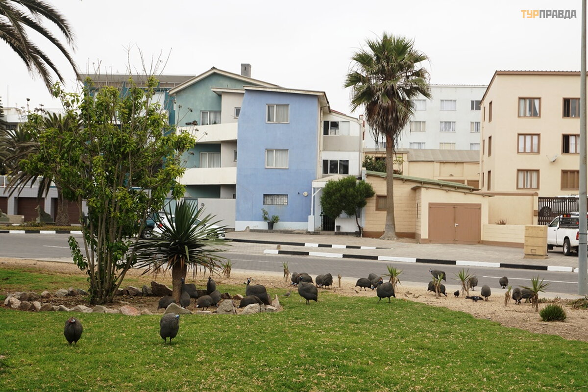 At 12:07 we arrived at the coast of the Atlantic Ocean, the city of Swakopmund. There were ten of us, and the driver took everyone to their addresses of residence. Here is the service. We have to the bus station, and then pay the taxi drivers at the cost, both from the city and to the city. At the hotel I was quickly received and placed with a smile. The room is very good. Ocean view. After a shower, I slept a little, and then went for a walk around the resort town of Namibia. He dressed in summer clothes, and when he went outside, he blew such cool air, as if air conditioners were installed in the city. There is no air conditioning in the room and it is very cold. Apparently, the waters of the Atlantic bring coolness. The locals swim, but I have not yet decided, although there are a lot of dark-skinned dove-colored people on the beach. Where else can they sunbathe? A beautiful city, but everything is covered in dust from the sands that surround the city. There are few flowers. The flowerbeds are trampled down by the inhabitants and raked by Guinea fowls. By habits they are a copy of our chickens. They are not afraid of a person, but they do not let them close to themselves. In one of the alleys of the city I saw women with children of an incomprehensible kind with a naked torso to the waist, and a bright fiery skin color. They sold handmade souvenirs. I wanted to take a picture, so they raised such a cry, they say, only for money. At first I thought that they offered sex for money. I understand when sex is for money, but for a photo that other tourists will see and come to them for souvenirs? I'll try tomorrow to find out the price, very interesting women. I walked around the city for five hours. Breakfast in the morning is very decent, but the scrambled eggs clouded my stomach. I hate anything made with eggs. I will never forget scrambled eggs in the Maldives and Bali. At eight in the morning I left for the first sea excursion.