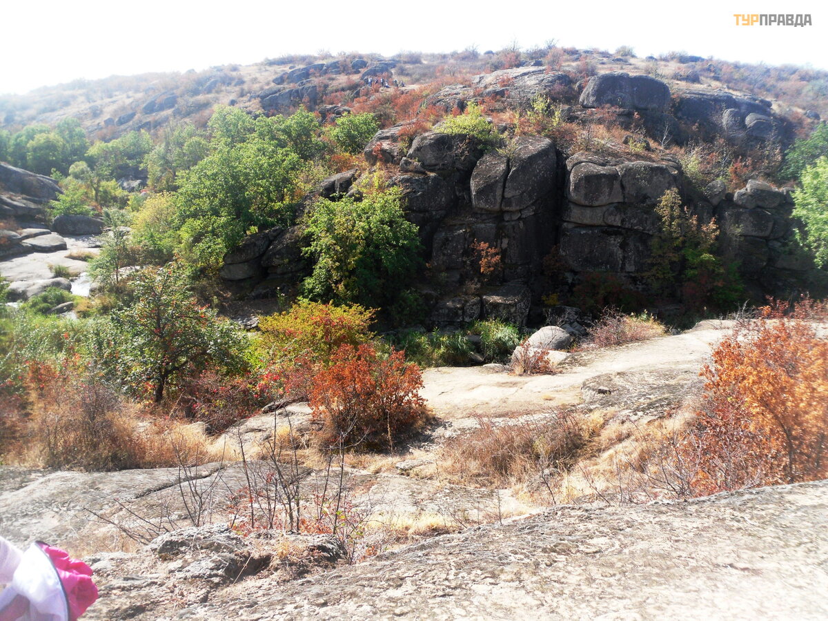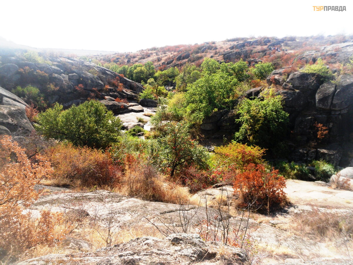 There are many versions of why the river got its name. Our guide said that its bend resembles some ancient weapon or tool with the same root in the name. I tried to listen to the guide, look down and around and take pictures at the same time so that there were fewer people in the photo, so I didn’t hear everything well. I read on the Internet that the name comes from the two words “burnt elder”, that earlier a lot of elder grew along its banks, by autumn it burned out from the intense heat and acquired a brownish tint. I didn't see an elderberry here. But hawthorn grows in abundance here, and its bright red fruits, along with burnt grass and colorful foliage, create delightful autumn landscapes.