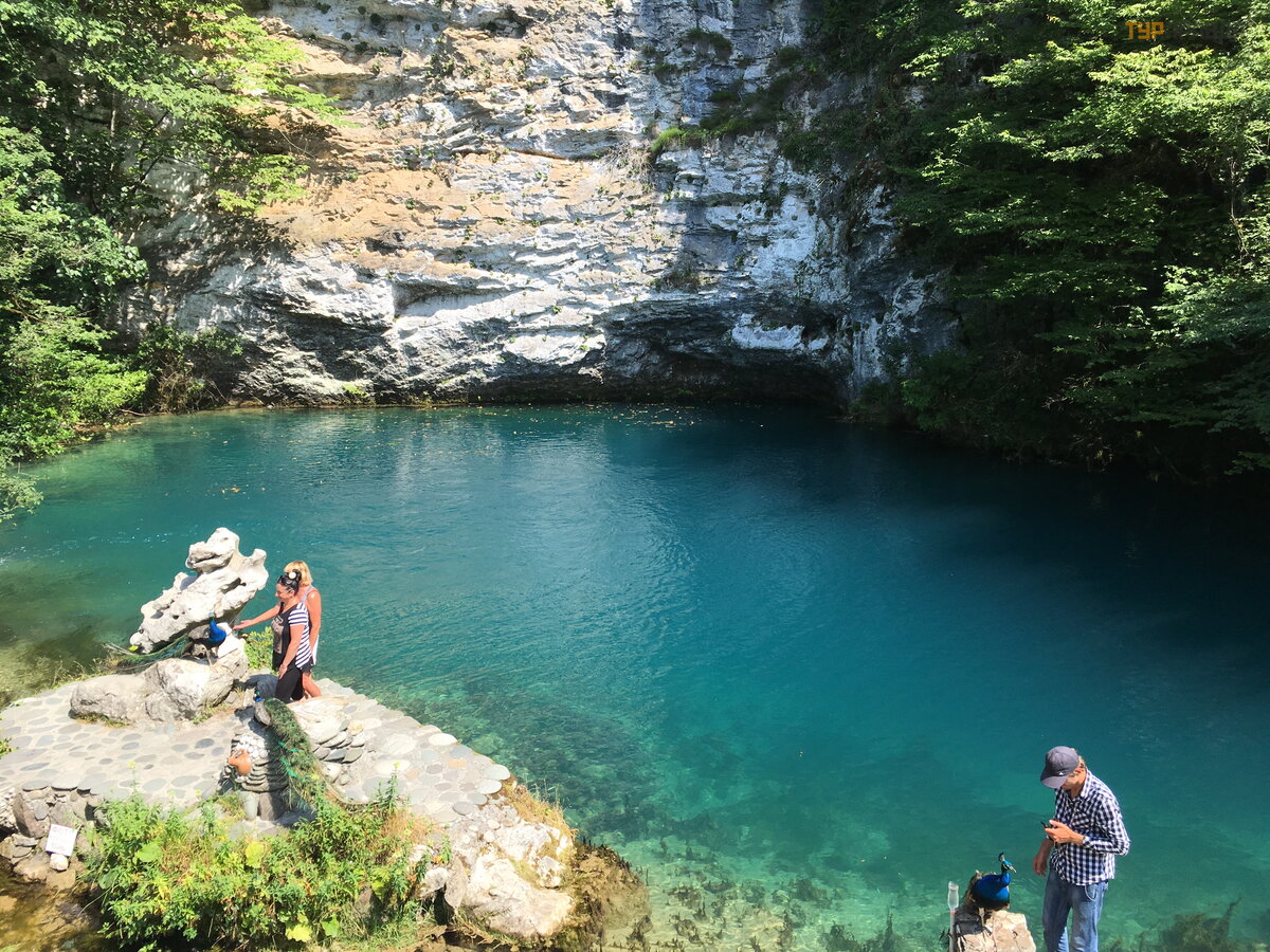 Then we went to the White Rocks, the very ones where the Diamond Arm was filmed. The rocks themselves did not make much impression, but I really liked the contrast swimming in the sea! On the way back we saw the shortest river in the world and DOLPHINS! : ) It was very cool, they swam right next to the sides, jumped, fins scurried back and forth. The price of the tour is 700 rubles per person, children under 10 years old are free. It's worth the trip!