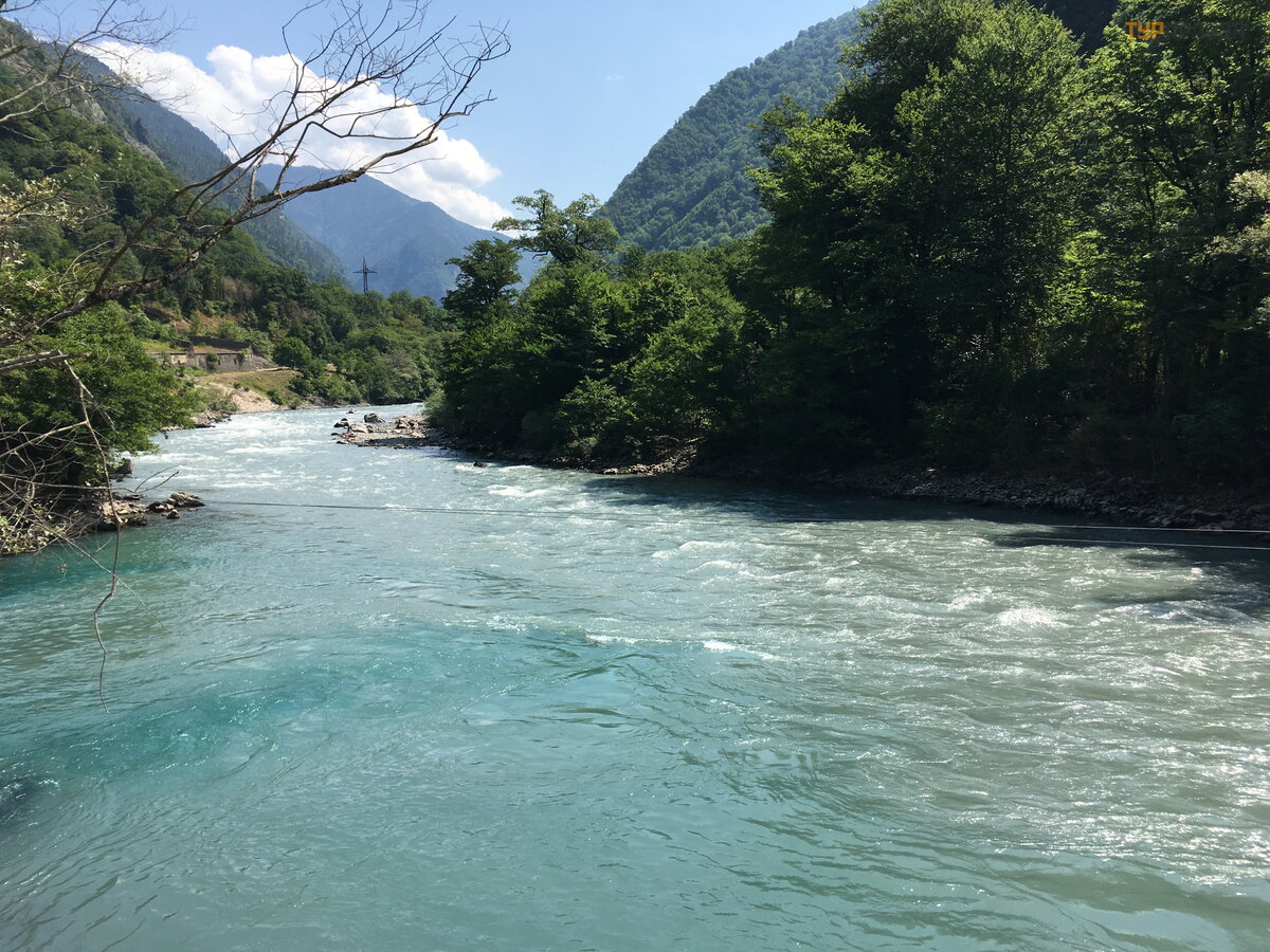 We drove for about half an hour, I was completely delighted with the landscapes: another city, mountains, blue sky. We had to stand at the border for about two and a half hours, and it was hard. The beginning is already really sleepy, and sleeping on the seat is far from comfortable, in addition it is hot, the sun is scorching through the glass. A bottle of water is a real must-have! The Russian customs holds an incredibly long time: first you stand in line on the bus, then you get off with all your belongings, you go to a stuffy room, you stand there in a line of people, you go through passport control, where they examine you for a super long time and ask questions, and then also in on the bus, you wait for all your companions who decided to stay in the toilet. The Abkhazian customs, on the contrary, flew by in about ten minutes. A moment, and we are already driving along the main road of Apsny, leading through all the cities of the country!