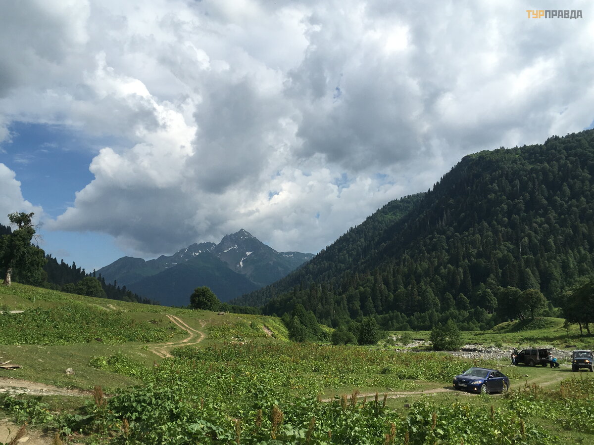 Next on the program were Alpine meadows. This, I admit, was our mistake. It was possible to stop at the lake, or go to the Milky Falls and Stalin's dacha on the Ritsa, but we are stubborn : ) we go strictly according to the program. It takes a long time to get there, an hour, maybe more. The views around, of course, are amazing, but still the road turned out to be rather difficult. Alpine meadows, of course, are very beautiful, but they do not live up to expectations a bit and there is not much to do there. But nothing, once in a lifetime it was worth seeing, so we were not particularly upset. It was very cool!