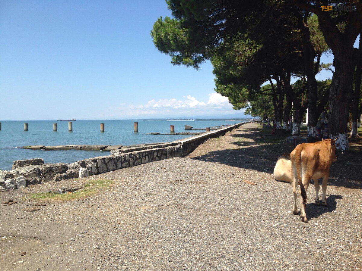 "Paradise" Tsandripsh is a shady village with dusty potholes instead of roads on the outskirts of a poor country with a railroad. on the way to the beach, which is filthy with cows wandering on it and which is never cleaned by anyone.