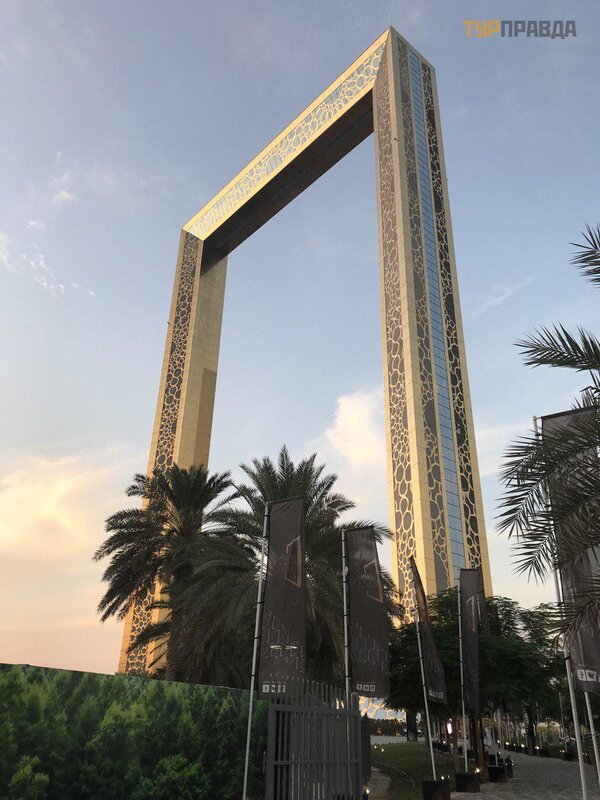 Дубайская рамка (Dubai Frame) – виз с нее на закате