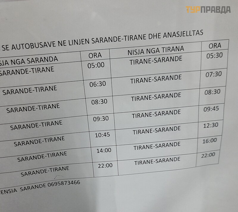 Current bus timetable from Tirana to Saranda via (Gjirokastra and Blue Eye) and back