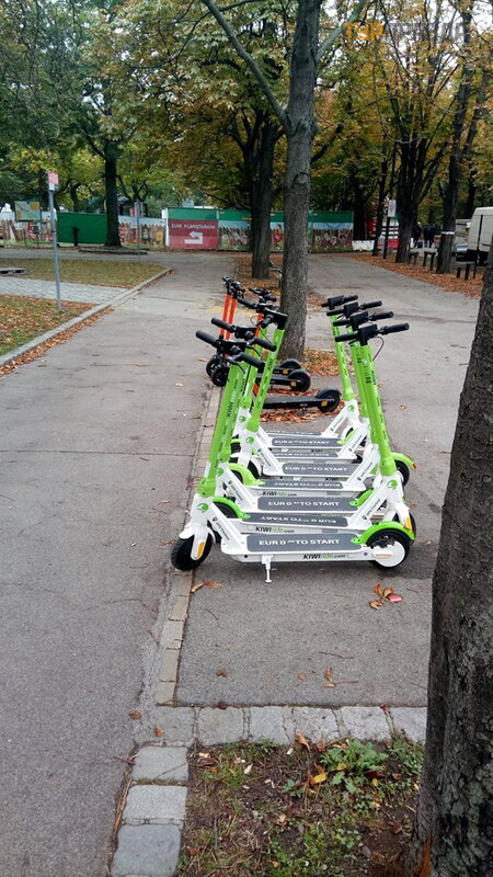 Motorized scooters lying around and standing here and there are something. I saw it, I took it, I went. There is a QR code on the steering wheel, by scanning which you can take a scooter for 1 euro (0.15 euros per minute).