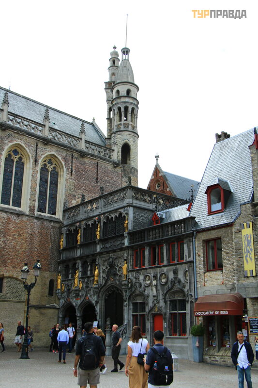 But the building of the City Hall is considered the most beautiful in Bruges. This sumptuous piece of medieval architecture flaunts Place Burg. This is one of the oldest buildings not only in Bruges, but in all of Belgium. (14th-15th century, construction took 45 years). This architectural masterpiece was built in the Gothic style, but it seemed to me as if woven from lace, and they say that no other town hall has overshadowed the splendor and wealth of the Town Hall in Bruges.