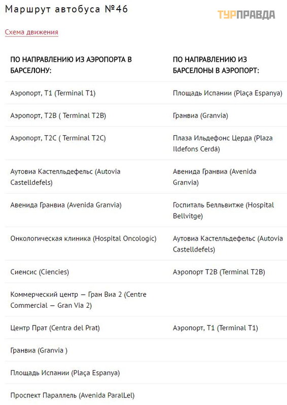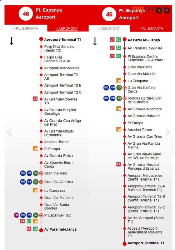 Bus №46 goes to Barcelona Airport and departs from Plaza Españ a (Plaç a Espanya). The bus stop will be the first on the right if you go to Plaza de Españ a (Plaç a Espanya) along Parallel Avenue (Avenida Parallel). It first stops outside Terminal T2A at the stop to the left of the Aerobus stop when facing the airport. The next stop is located outside the T2C Terminal. The last stop is in front of Terminal T1.