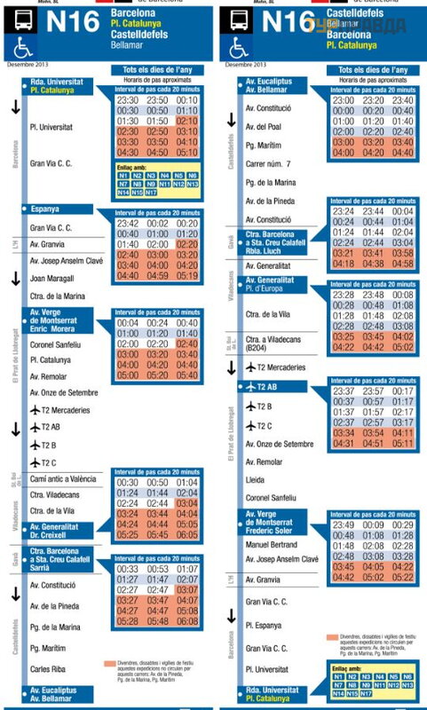On the night bus, you can use the T10 card, with which one trip costs a little less than one euro. In Barcelona, the terminus is on Ronda de la Universitat, near Plaza Catalunya (Plaç a de Catalunya).