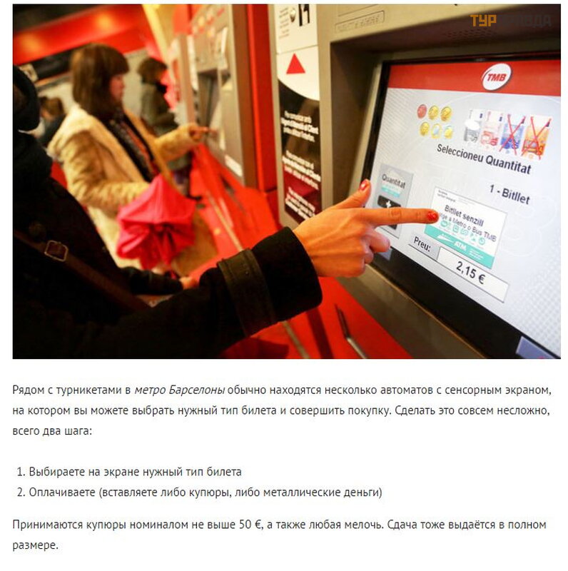 The metro station from terminal T2 is located behind the entrance to Renfe station, there will be a downward sign. There is also an information point opposite the terminals. Speak English. There you can ask for a city map, a metro map, free of charge. And also we immediately bought there tickets for a tourist bus around the city of Bas Turistik. It was not possible to buy T10 travel cards for 10 trips, the function did not work. So if you don't understand something, don't hesitate to ask.