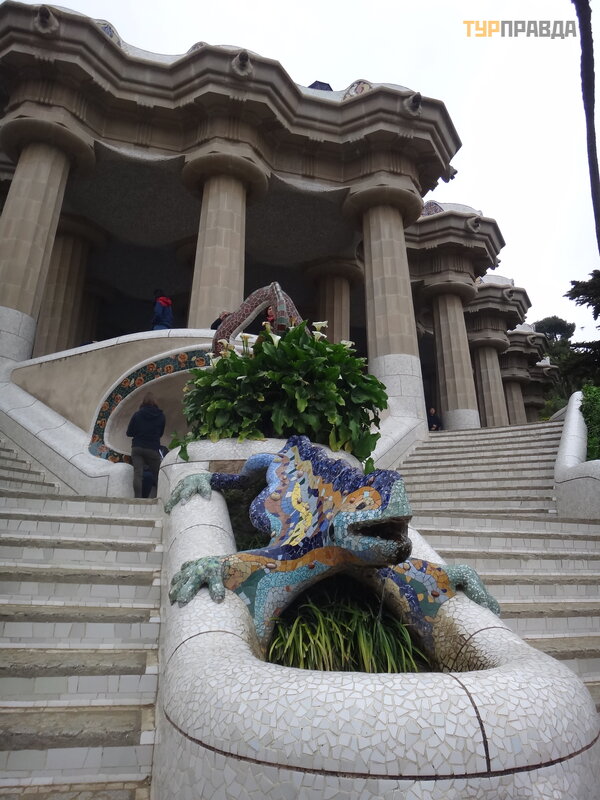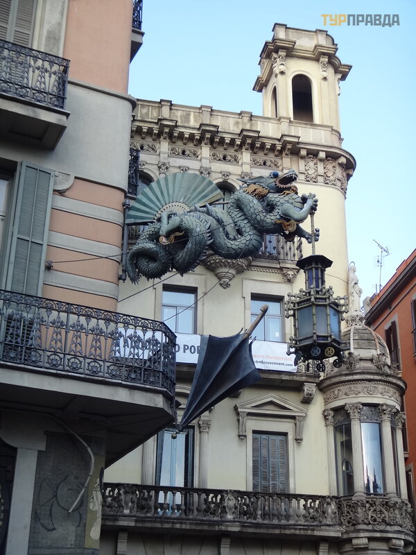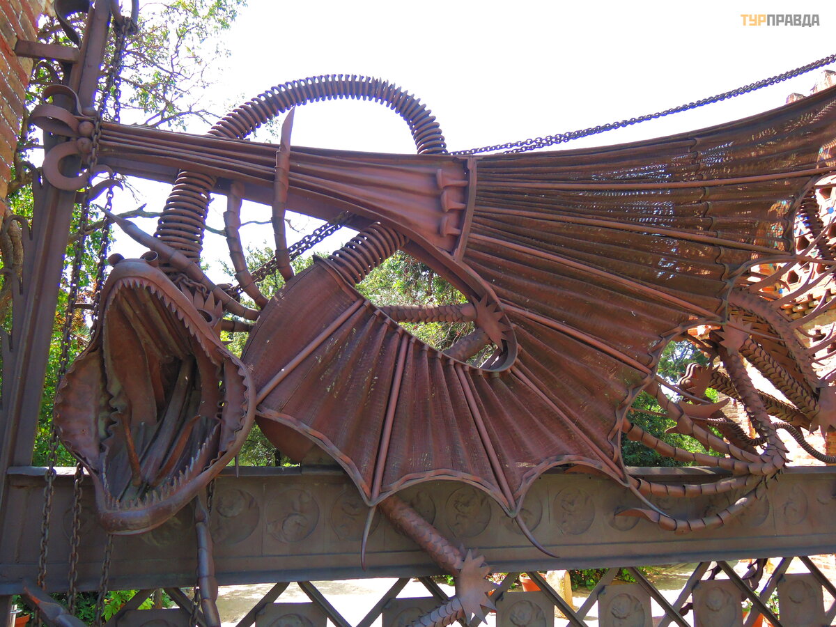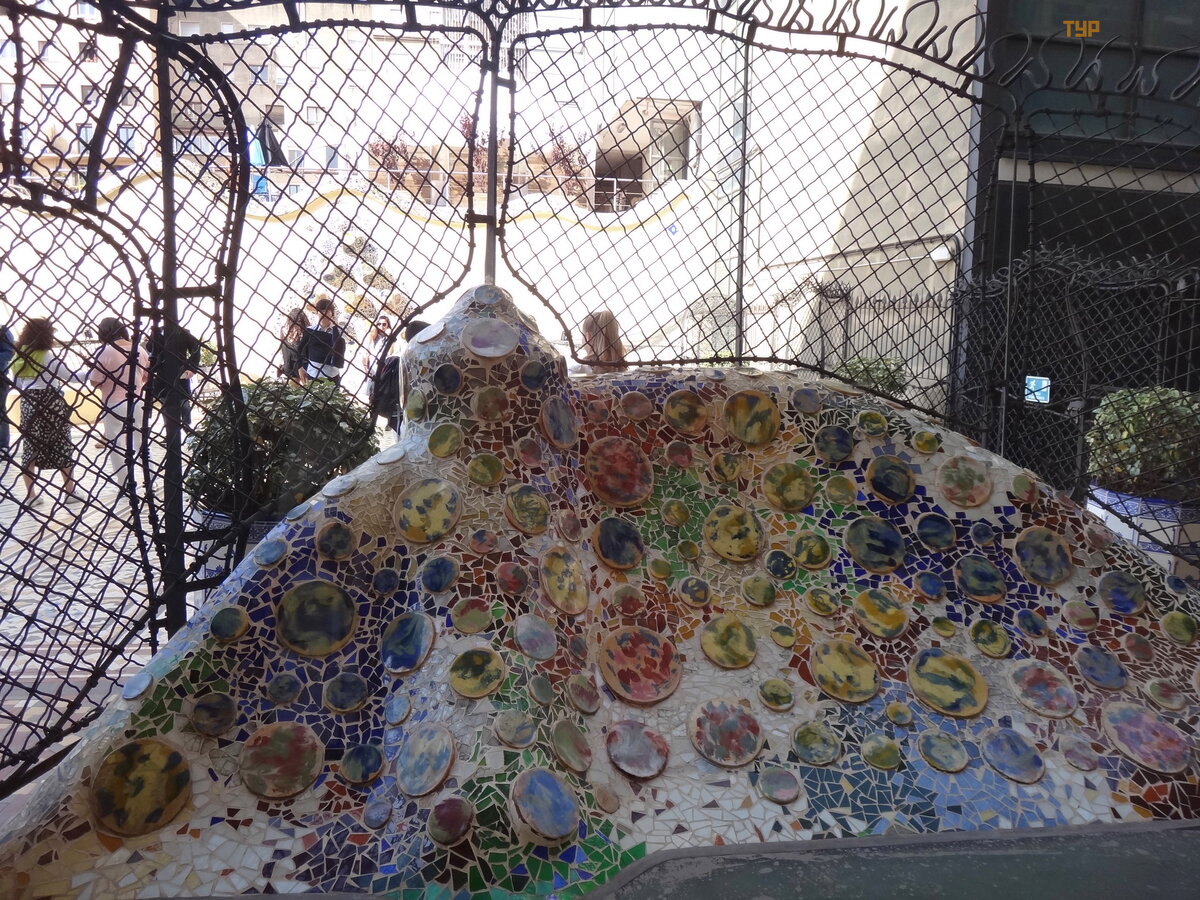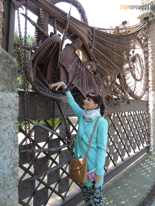 Palau Real or Pavilions Gü ellis the place for museum lovers. There are two museums here - ceramics and applied arts, furniture in general. We didn’t go to museums, there is also a discount according to the book Bas Touristik. Clicked against the backdrop of an unusual gate, the initiator of which was who ? ? Why, Gaudi, of course! Previously, the dragon on the gate moved with the help of a mechanism, opened and closed its mouth.