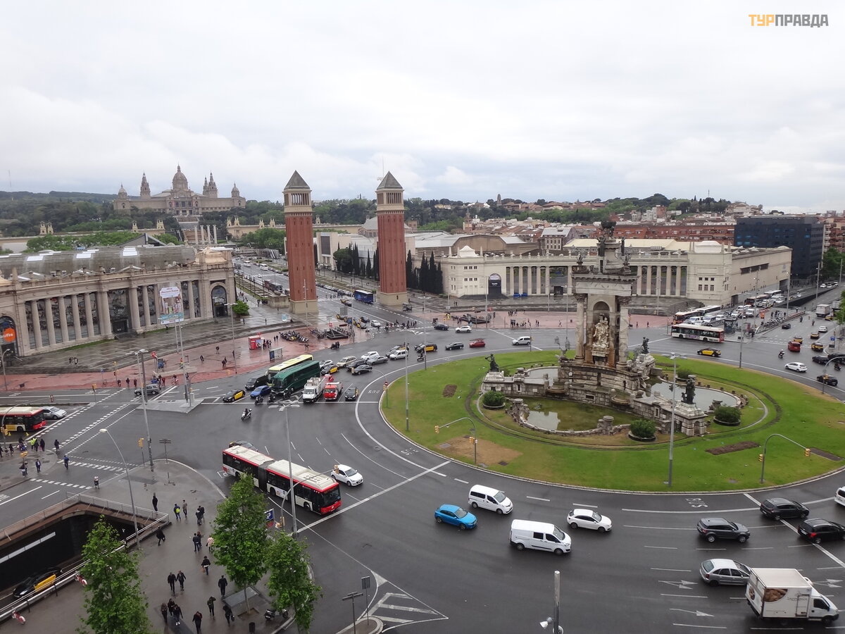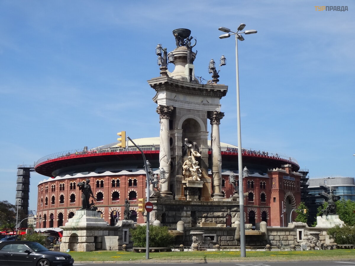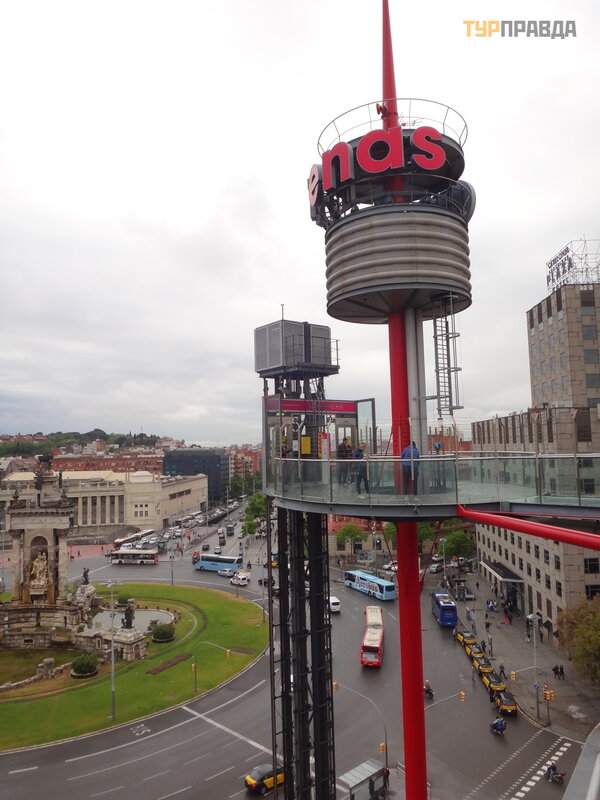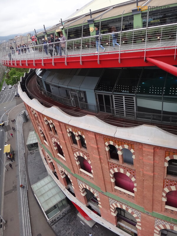 Next to the square is the Arena shopping center in a former bullfighting building, which is now banned. Good views open from the shopping center, more precisely from the observation circular platform located on the roof. An external elevator raises there or you can climb inside the Arena and go to the roof. Personally, I liked much more than Plaza Catalunya.