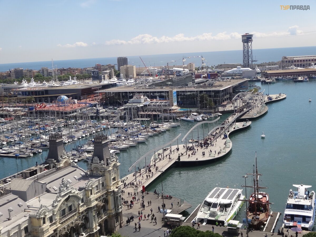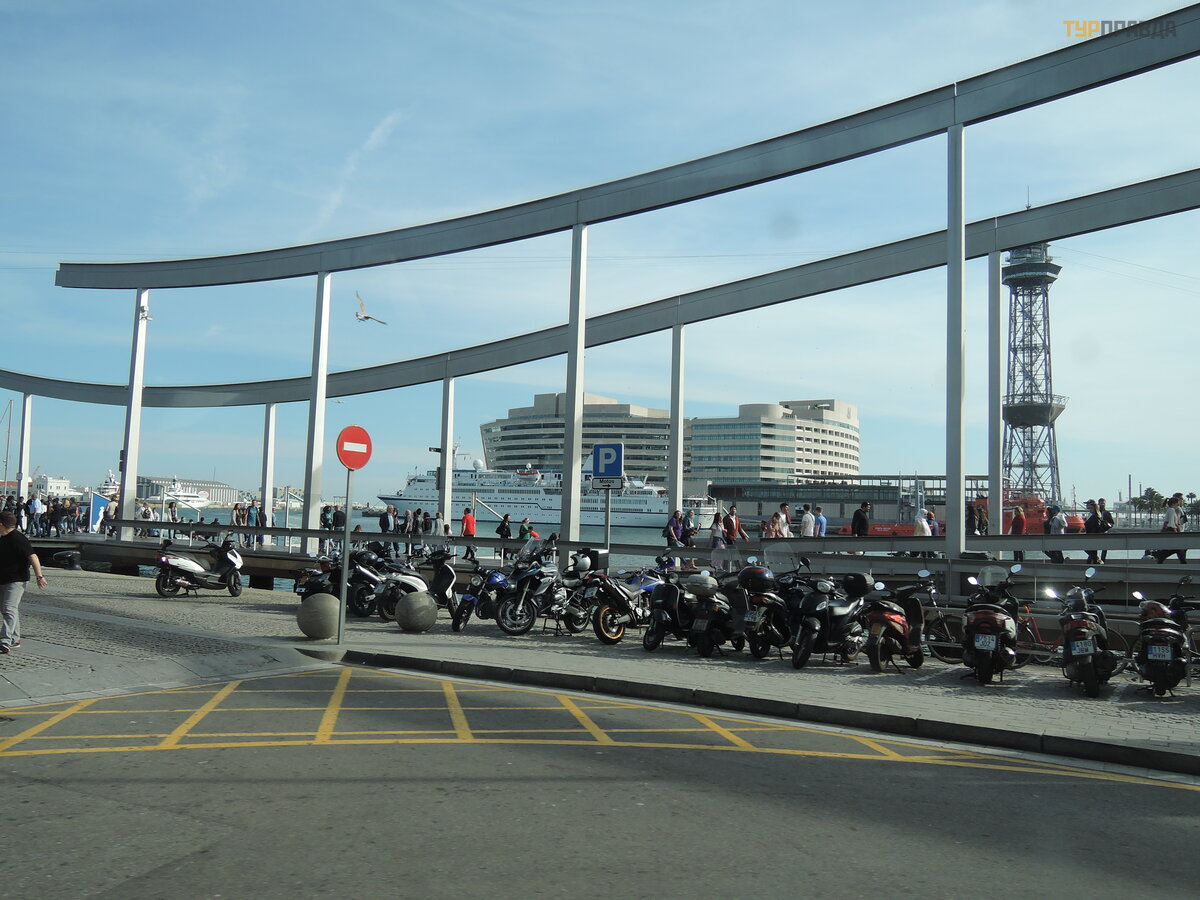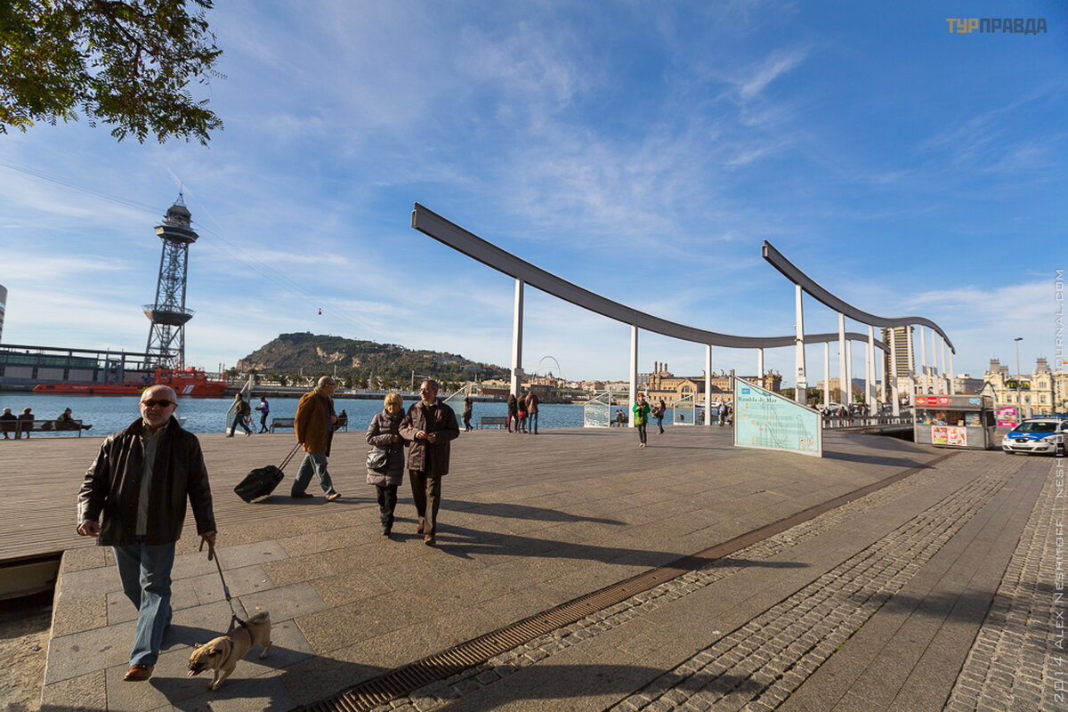 Port "Vell" in Catalan means "Old Port" and is one of the oldest areas of Barcelona. Perhaps the most interesting place in this port, which has become a motive for numerous local souvenirs, is the Rambla de Mar suspension footbridge system, which continues the line of the Rambla, but already by the sea. The bridges are elegantly decorated with steel channels, curved in the form of waves, emphasizing the marine affiliation of the building.