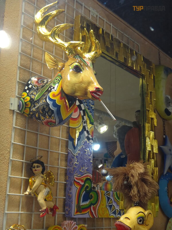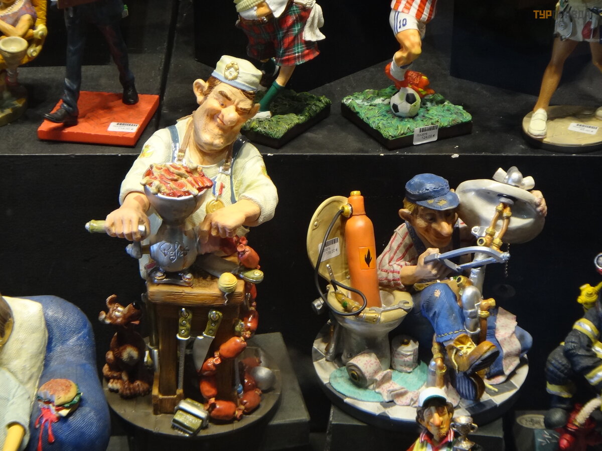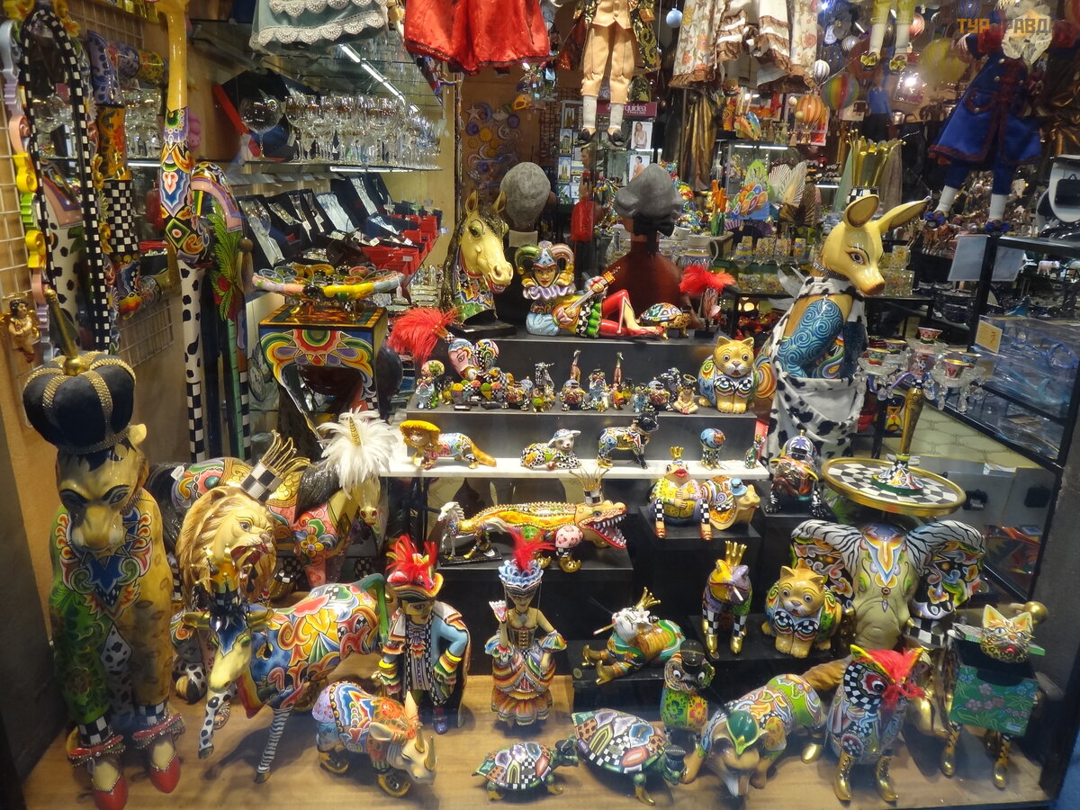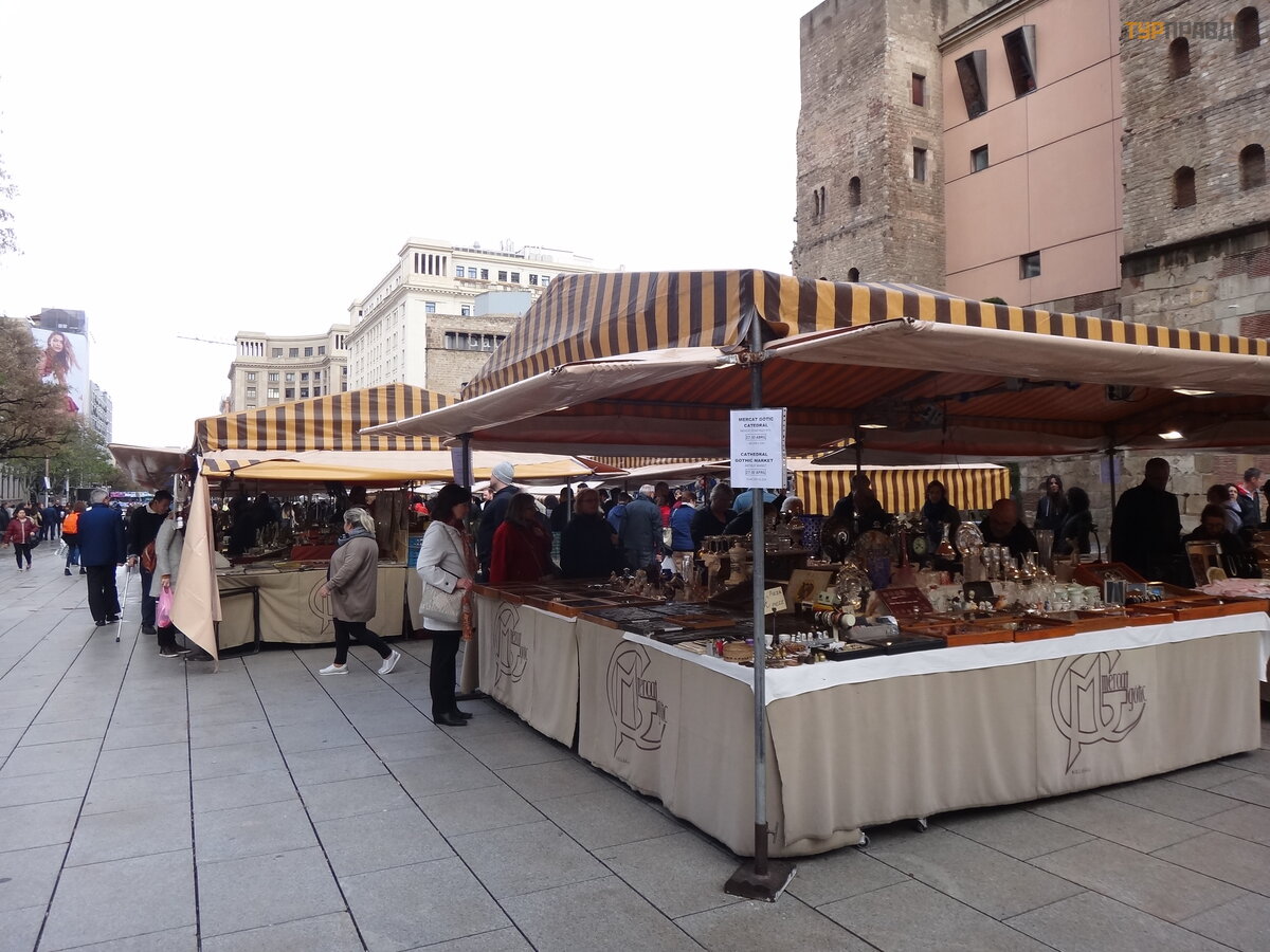 First of all, it is worth noting the pedestrian La Rambla, stretching from Plaza Catalunya to the Columbus Monument. Of course, it’s worth taking a walk along it, and it won’t hurt to get gifts for relatives and friends. Judging where it is more profitable to take something is hard. For example, I was looking for a cat figurine in the style of Gaudí . I bought it on the Rambla, and later I saw the same one cheaper near the Sagrada Familia. In outdoor tents, everything is definitely cheaper than under a roof, renting a room probably affects. We thought that they were selling Chinese junk, although what's the difference, but they have all the goods with bar codes, and everywhere excises and labels - made in Spain, which we were pleasantly surprised by.