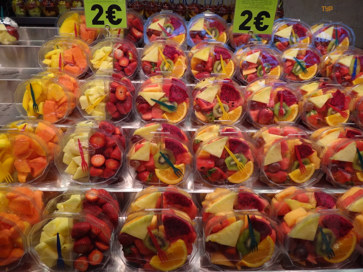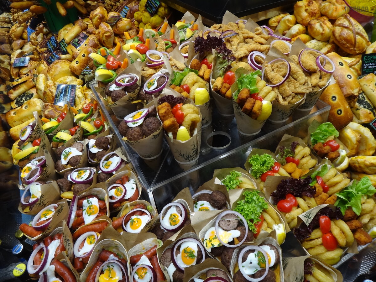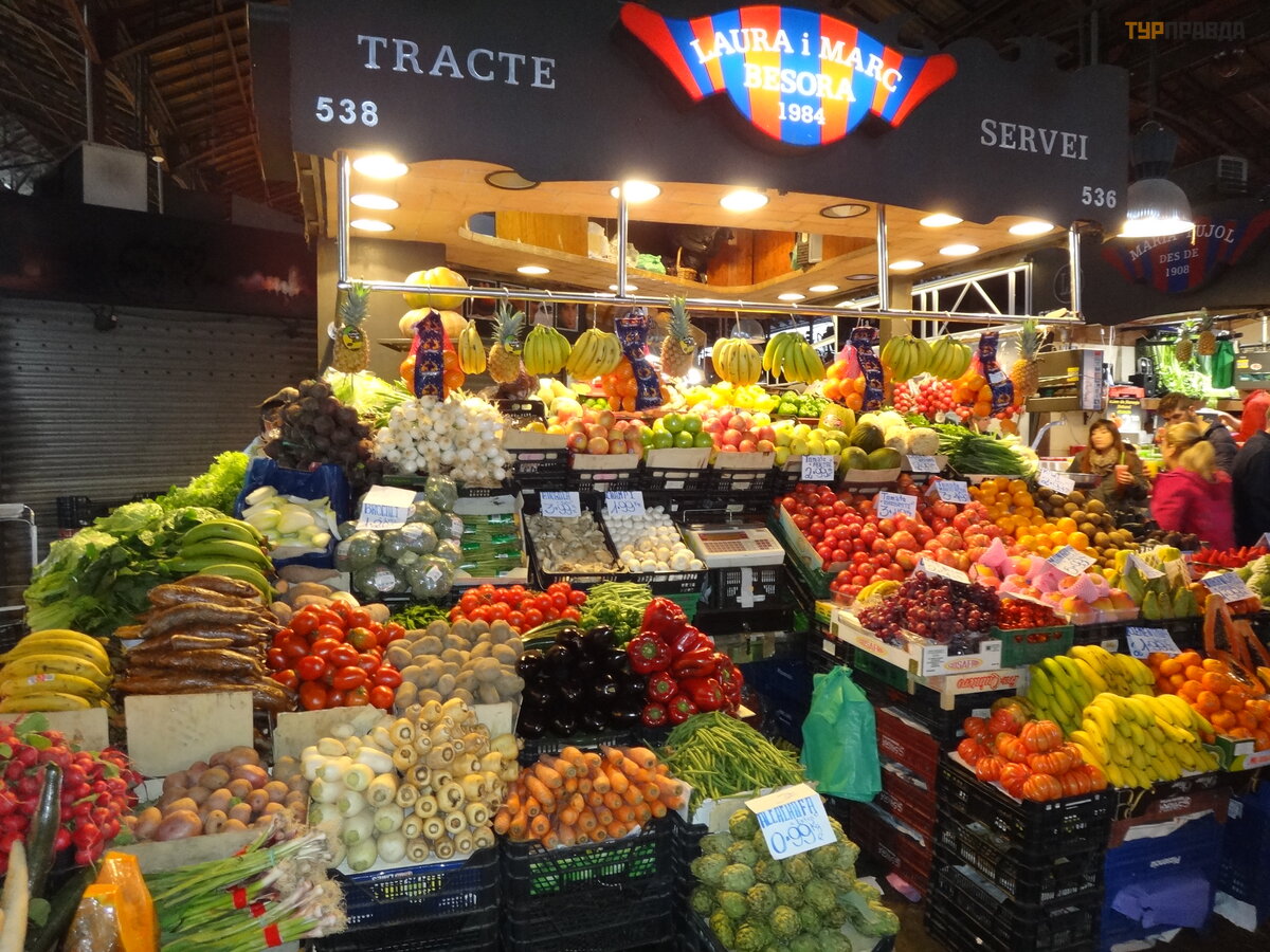 Next to the pedestrian street there is an equally famous and interesting place - the Boqueria market. Even if you are not going to take anything - just go to gawk and take pictures. The place is beautiful. And whoever thinks not only about aesthetics and new experiences, may well stock up on fresh products and, again, delicious gifts.