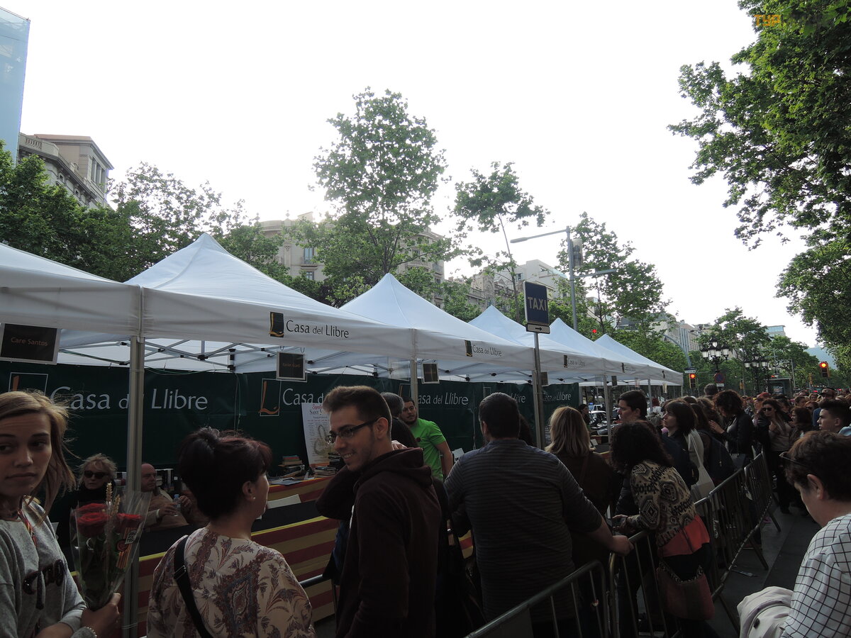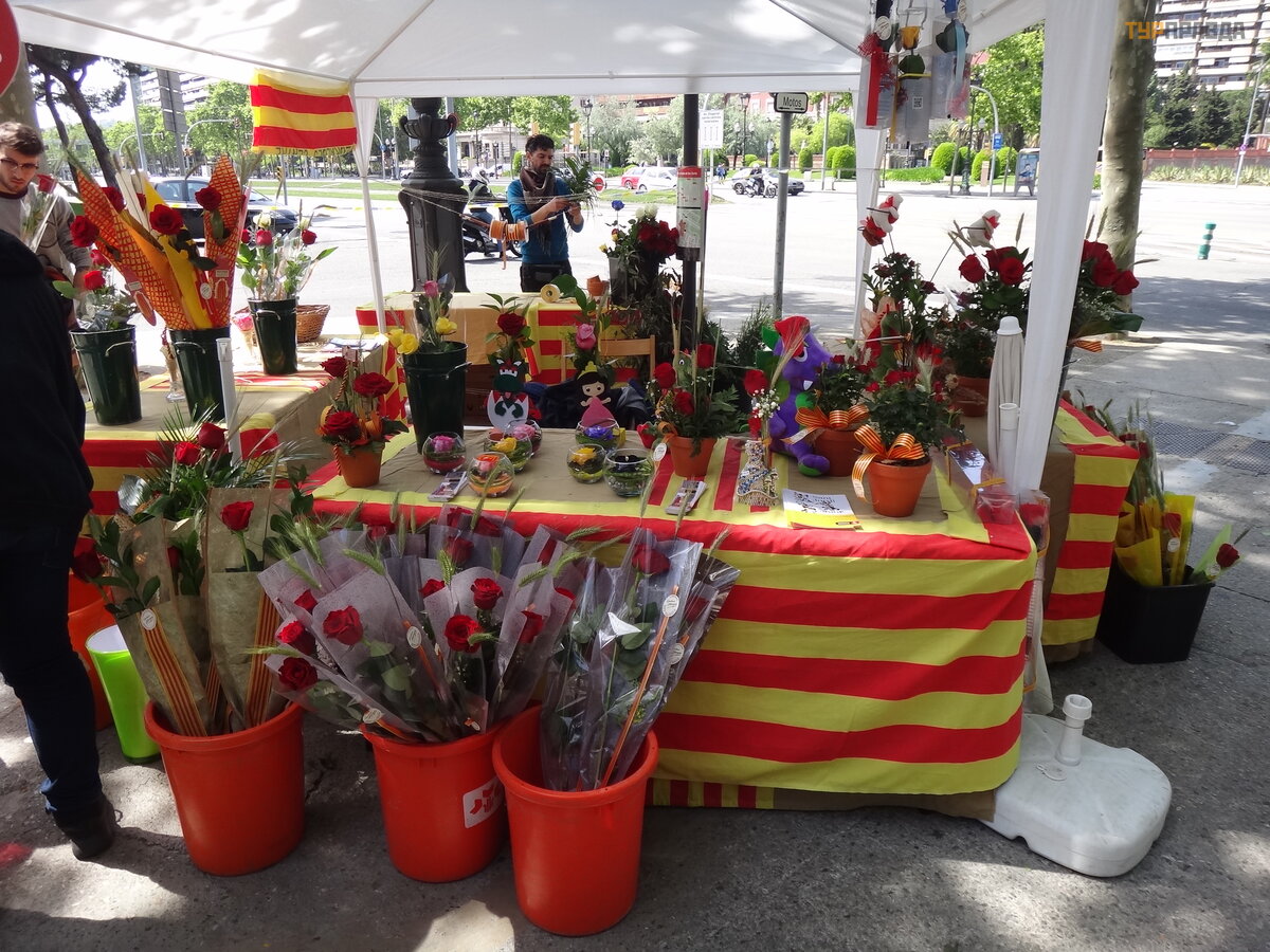 One of the most ancient local holidays. The streets are filled with tents with roses, as well as book stalls. This is a celebration of love and friendship. Men (boys, old people) give women (girls, grandmothers) roses tied with a ribbon in the color of the Catalan flag, and they in return give the male sex a book as a sign of friendship and love. Books signed by the author are especially valued. The holiday has no age restrictions. In short, the men, as always, got off lightly. I bought a rose and I'm free. And the female half defends in queues for signing books, and for the price, the book is clearly worth more than a flower. There is discrimination! ))))