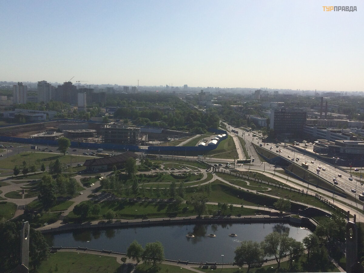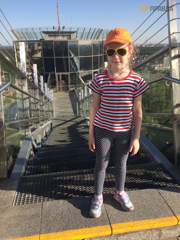 I dreamed of tickling my nerves on the panoramic elevator, but it didn’t work that day, I had to take the service elevator, which, on the contrary, my little coward was delighted with. And then she was still afraid upstairs - a typical example of a nearby fallen apple : ))) She was afraid, though not for long, the awareness of height captures. Here is Minsk at our feet))