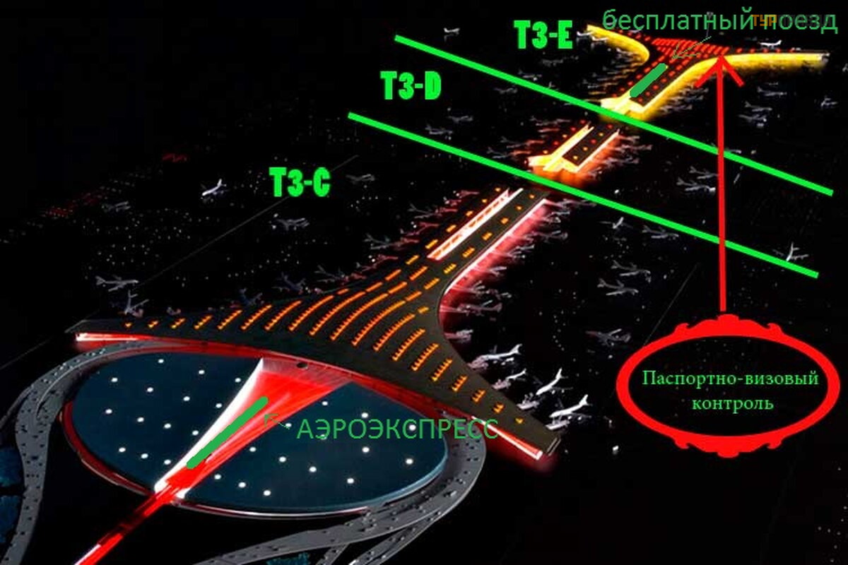 Beijing Airport is so big that there is a train inside Terminal 3. It's free.