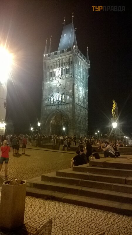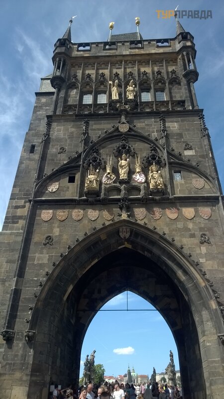 At the bottom of the street of a passer-by, a view of Charles Bridge