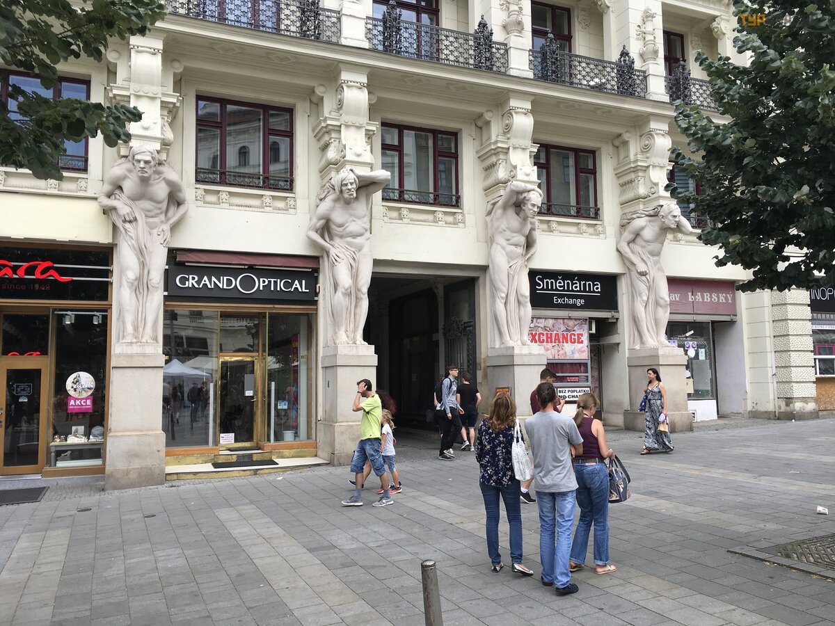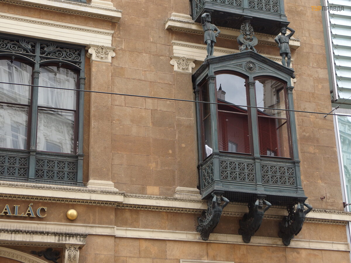 The house "At the four blockheads" - four statues hold the balustrade of the house on their shoulders. According to the author's idea, the statues were supposed to appear as mighty Atlanteans. But what happened, happened. Foolish facial expressions do not pull on power : )