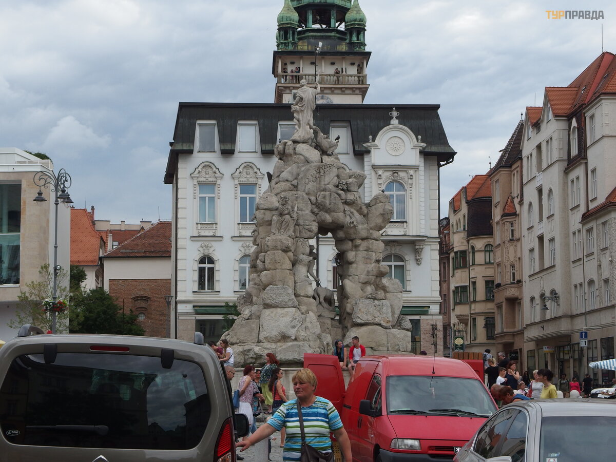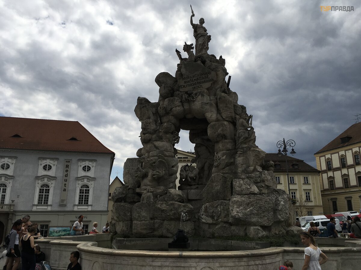 Cabbage Market Square is one of the oldest squares in the city. And now it sells fruits and vegetables. We got to the festival of Chinese cuisine, which was held here. In the center of the square there is a plague column and the fountain "Parnassus". There are three theaters around the square and the Dietrichstein Palace, the largest in Brno.