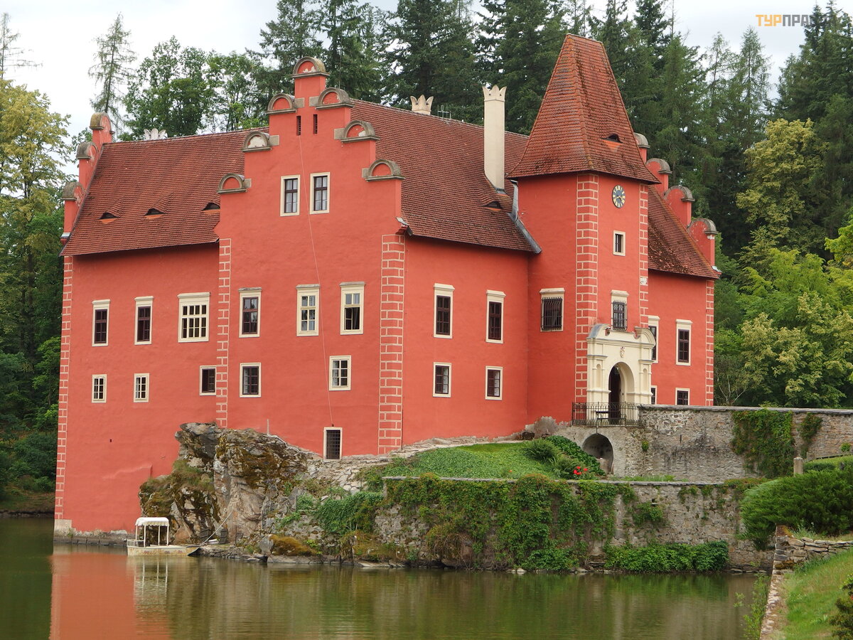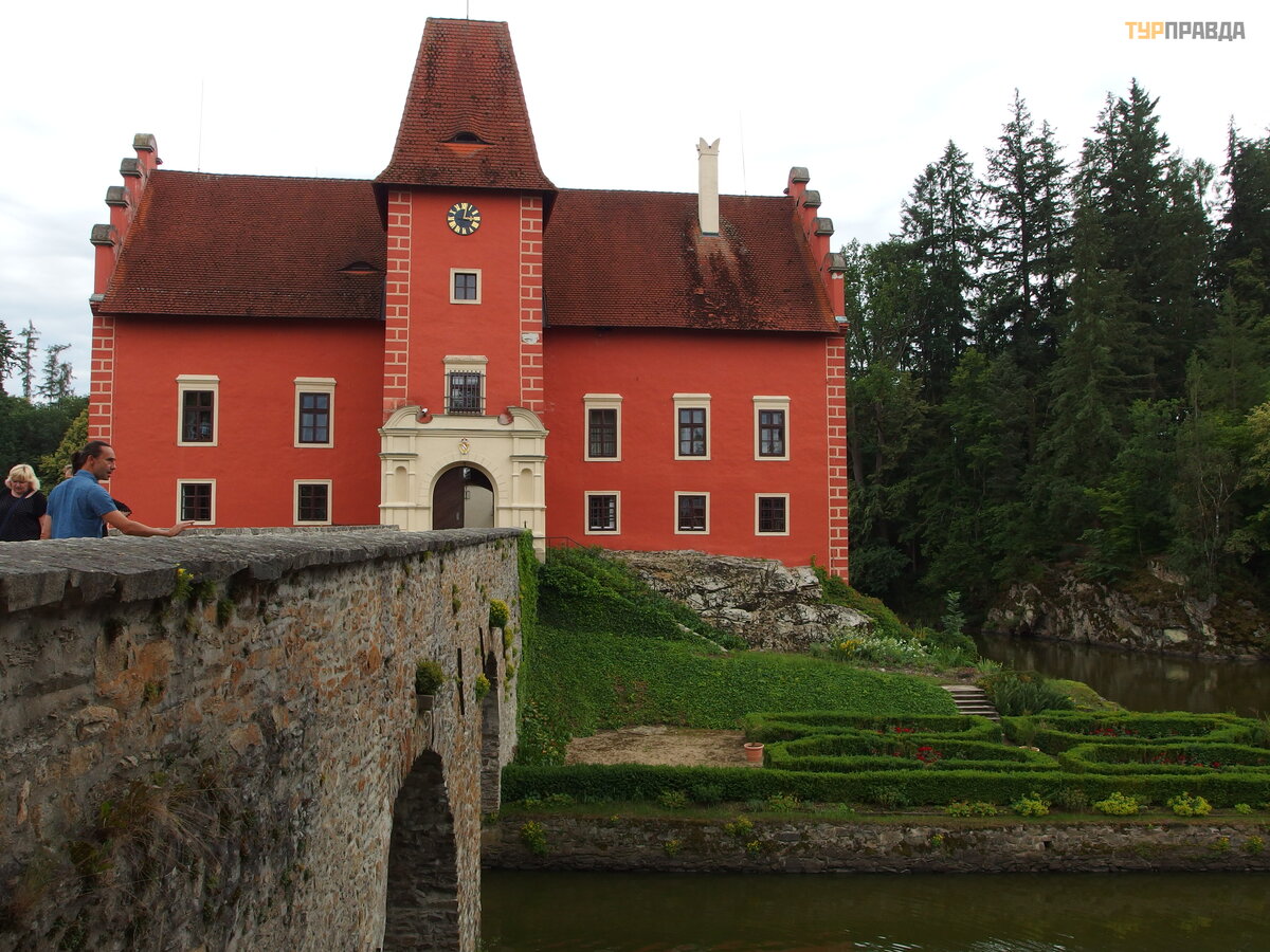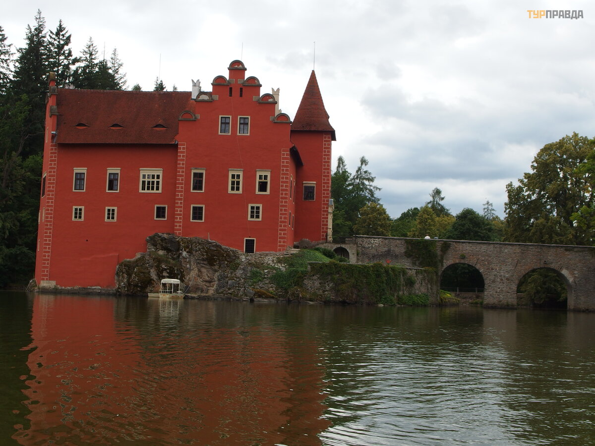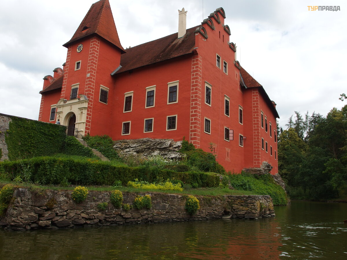 Initially, the castle was white, and no one knows why it was repainted red. But this event was overgrown with many legends, according to one of them, in the 16th century, the knight Gutram Kaba from Rybnyan was the owner of the castle, and his wife's name was Zhanna from Dirn. She was a Protestant and her husband was a Catholic. Somehow, Zhanna tried to throw an old family cross out of the window into the lake, in front of which her husband prayed. And at the moment when she leaned out of the window and threw the relic into the lake, a strong storm began, and the devil appeared. He grabbed Jeanne and dragged her through the window. She desperately resisted, but it did not help her.