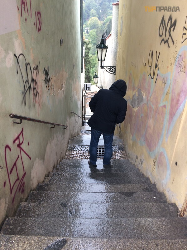 And I didn’t really want to believe it, I didn’t take umbrellas with me because of a baggage-free air ticket (I didn’t want to carry extra weights), raincoats, lying in the garbage closet from the prehistoric Thai voyage, were safely forgotten at home. But it happened! The rain overtook us on the outskirts of Prague Castle.