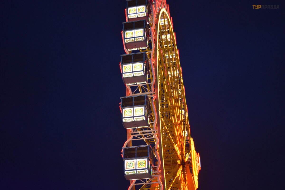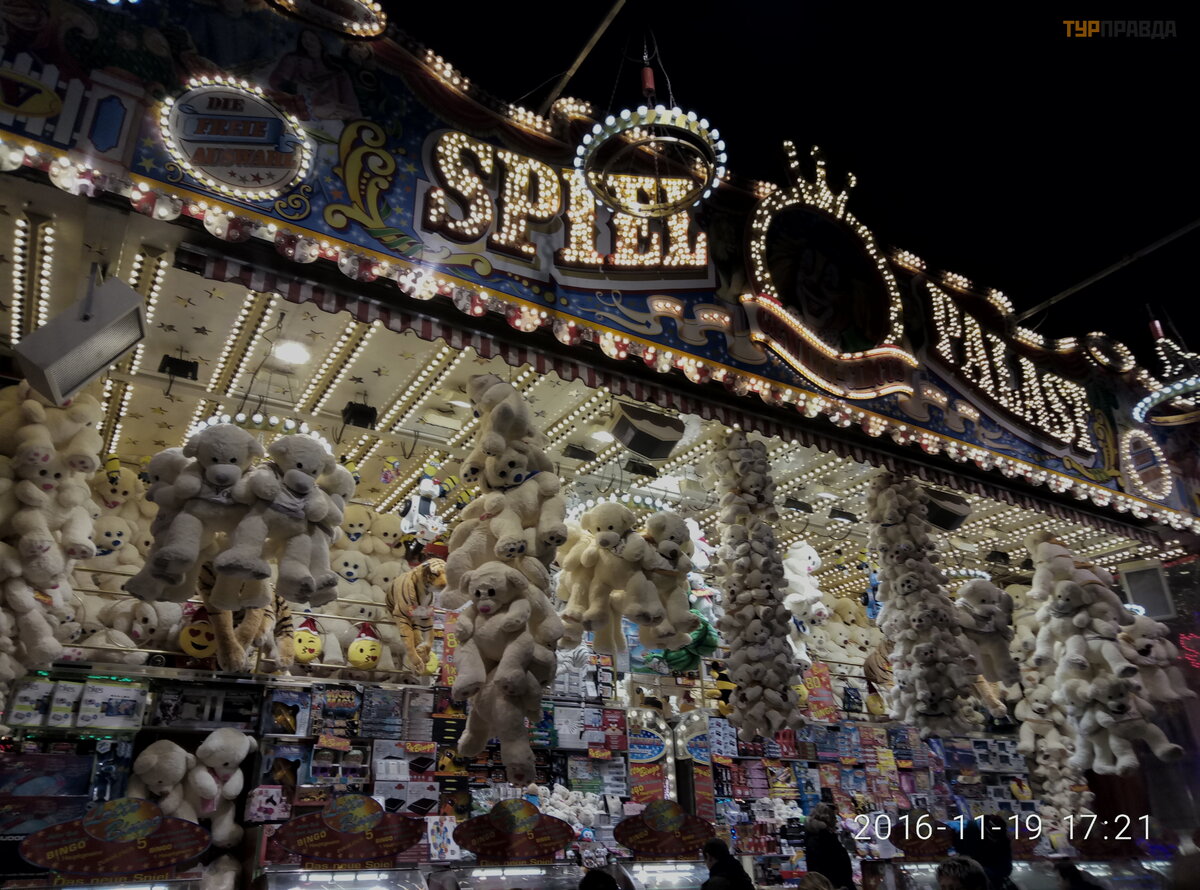 Let's drop things and go for a walk around the night city! Not far from the hotel, glowing with bright lights, noisy carousels, filled with children's laughter, smelled of German sausages and the aroma of glunwein, the local Lunapark. I don't know what it's called in Germany, but the principle is the same as ours, carousels, delicious food and drinks and everyone's fun.