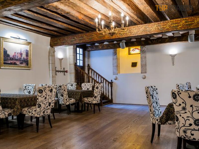 We entered the Old City to the sound of thunderous drumming. It was provided by the wheels of a suitcase and the cobblestones of old, medieval streets. Hearing this from a mile away, as if hearing a herald, the employees of the Three Crowns Hotel must have rushed to prepare the best, royal suite for distinguished guests. And the most friendly smiling administrator helpfully opened the arms of the hotel to us. Where we comfortably placed the caravan of our property on …. . eight meters of square. This includes the restroom. Probably the number was designed by a yachtsman. Everything is very ergonomic. There was also a hanger with a cabinet at the entrance, a table with a TV, a large bed. Everything in the bathroom is very clean and tidy. No complaints.