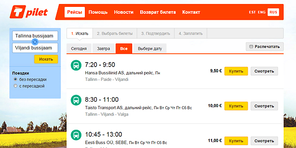 Эстонский сайт бронирования автобусных билетов: www. t-pilet. ee