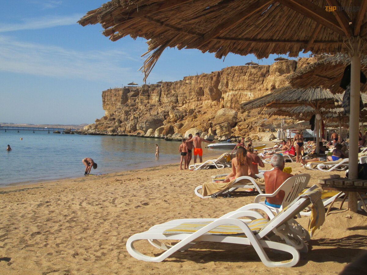 Sea. The coast is sandy, somewhere from the depth to the waist the first ridge of the reef begins, but it is practically dead, there are very few living corals, but there are fish. My wife liked this place, that there is no wall with great depth, but there is fish, it even swims to the shore. Next comes the sandy bottom with coral patches, and then the main reef, where there are live corals. The reef is very good, boats and yachts sail to it from other places in Sharm, with excursions to dive. They stay on the road until 3-4 pm.