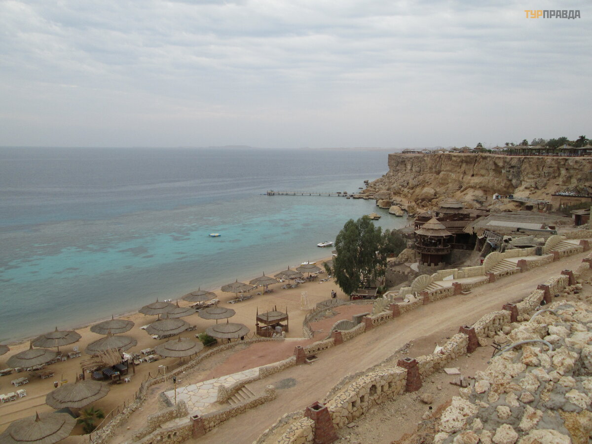 We go to the sea early in the morning. Beach towels are issued near the Coral Pool on cards, the towels are quite new (it used to be worse). Then we go down and go down to the sea. Descent to the sea, like the heroes: to the right you go - the stairs, worn out by the feet of thousands of tourists, past the bar and the Grill - restaurant, to the left - a gentle road, they carry beer and drinks to the bar along it, and straight ahead - the stairs, which have not yet been put into "operation" and going through the construction site, but the shortest. Here we went down to the beach along it.