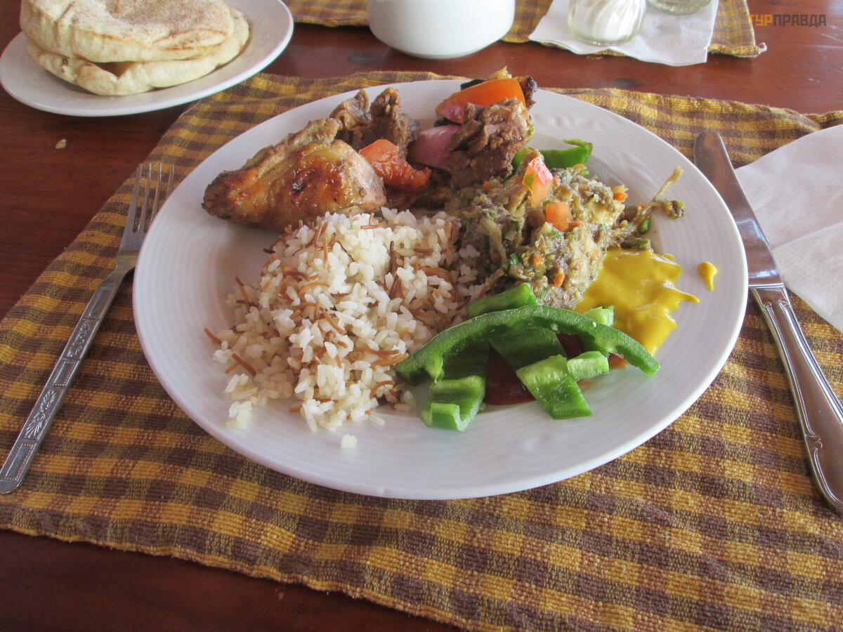So, European breakfast - scrambled eggs, omelettes, sliced sausages, cheese, salads, vegetables, pastries, pancakes, Belgian type waffles. Muesli, milk, juices, tea, coffee. For lunch - 4-5 meat and fish dishes, side dishes (rice, potatoes, etc. ), 2 types of soup - mashed potatoes, various salads, pasta, again pastries, for lunch in a restaurant - additional bottled beer. Drinks are poured into plastic (200 gr. cups). It's funny to see men who wear these cups to their table endlessly. Dinner is similar to lunch, there are interesting dishes - pickled lamb, fried chicken, kebabs, vegetables stuffed with something. Of course - fruits, bananas, dates. In short, I can't believe anyone stays hungry. For children and women, a large selection of jellies and mousses. Portioned dishes are laid out on the chef's plates, but I don't remember them refusing to add anything. Of course, there are no foie gras, red fish, caviar, lobsters and lobsters, but the chefs are trying at home too, I think there is no such choice. And I think that there is also a crisis in Egypt, so part of their problems are in this.