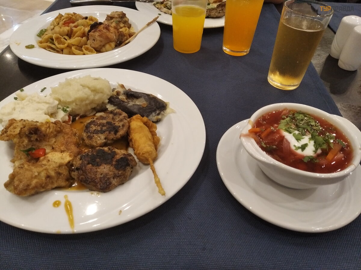 And yesterday there were dumplings! Wow! The chef with a mafia mustache and the habits of a count wandered around the hall very proud of himself. No, of course he's great! Everything he had was fresh and delicious. But not our national dishes! Don't go away! The carrots in the borscht were coarsely planed, without the slightest sign of sauté ing. Neither meat nor beans were observed either. But there was sour cream and chopped greens. And the dumpling dough was insanely tough. And stuffing, I did not understand from whom. I cook better too. But well done for trying!