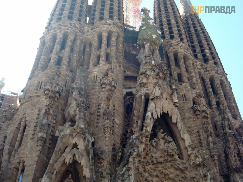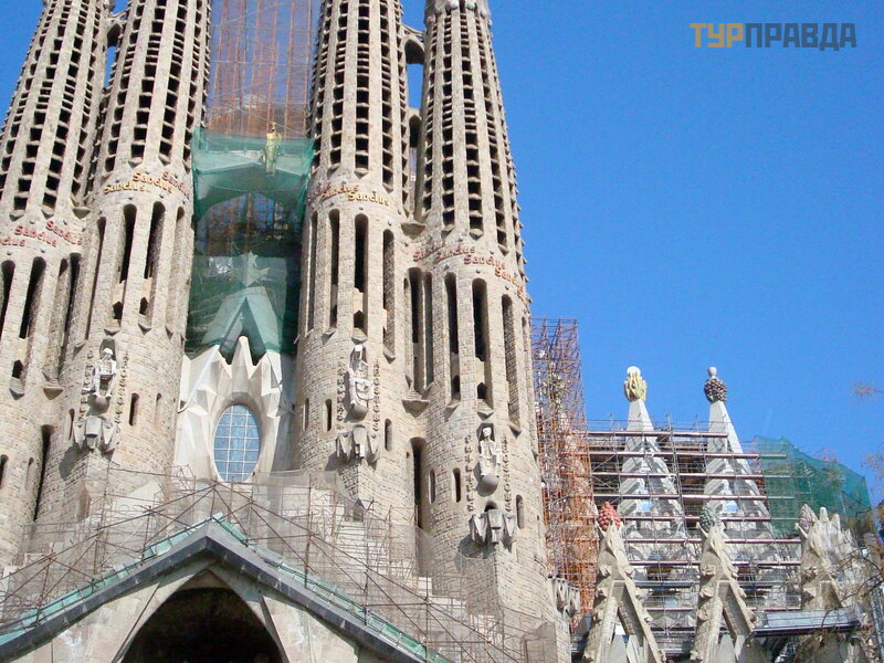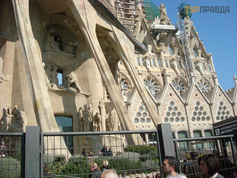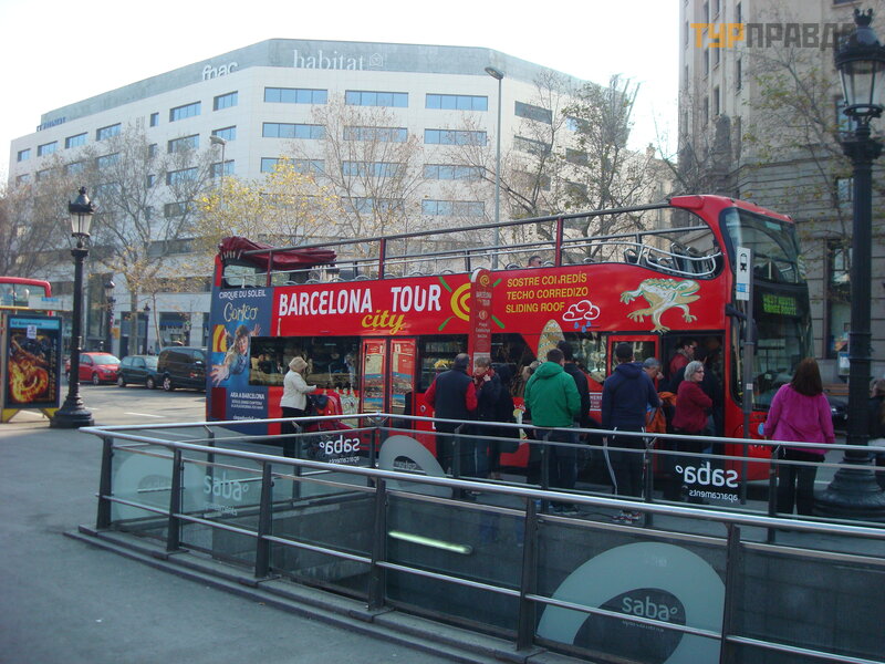 There is a stop and Bus Turistik, a bus that runs on three routes, going around the sights of Barcelona. The cost is about 25 euros per person. But we get to the starting point of our route - Sagrada Familia by metro (3.5 euros / person).