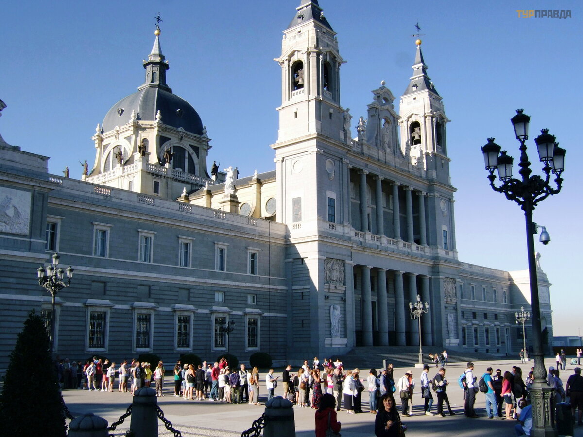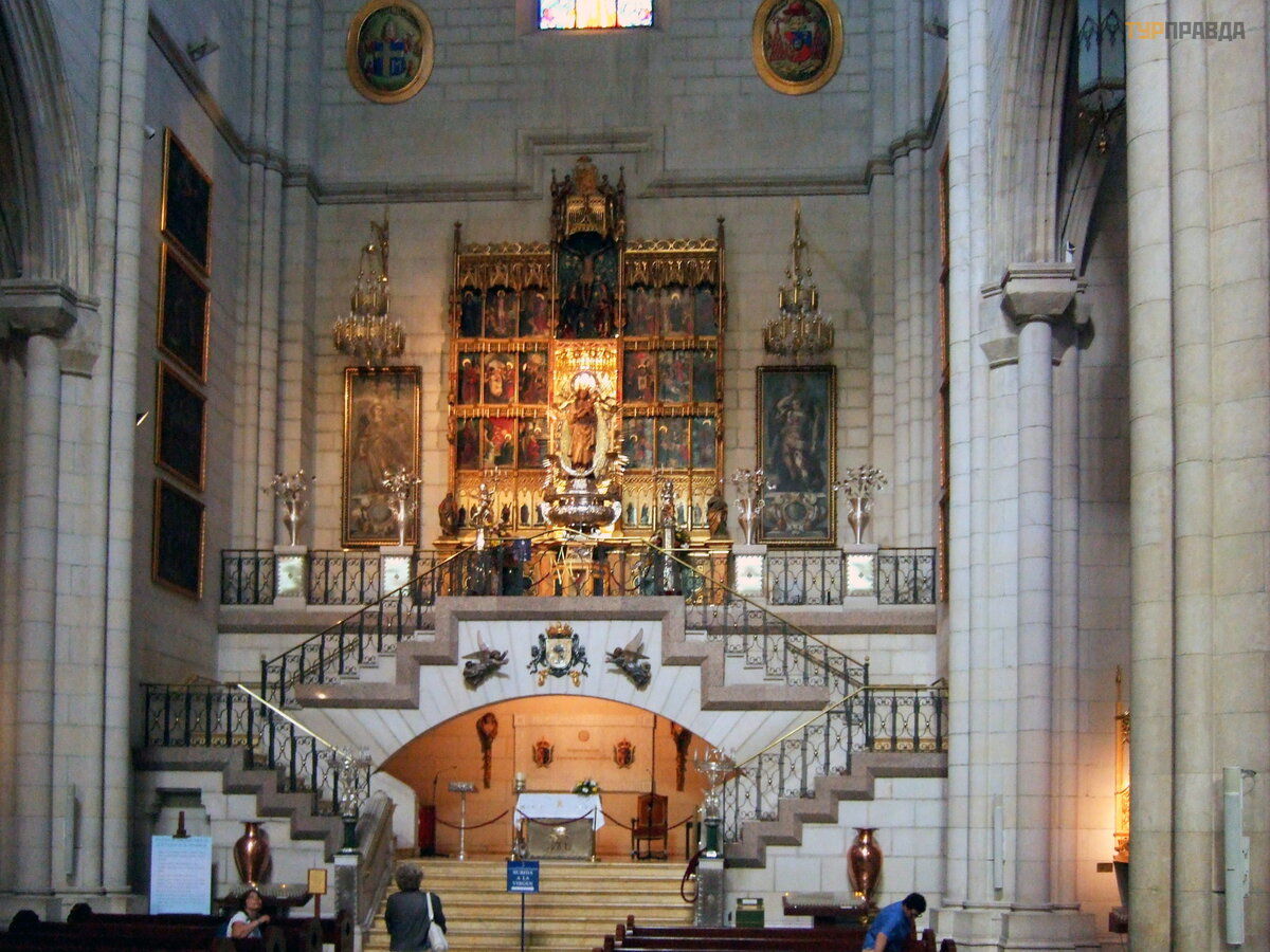 Not far from the palace is the Almudena Cathedral. In Madrid, there was no cathedral for a long time, because. it was not the seat of a diocese. Only at the end of the 19th century did the Pope establish a diocese in Madrid, and the construction of the cathedral began, but due to various reasons, the cathedral was built only in 1993.