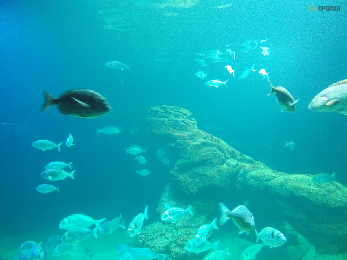 Рыбы в аквариумах не очень большие и в основном серые, но все же впечатление от " погружения" в их мир и от " подглядывания" за их жизнью остается достаточно стойким.