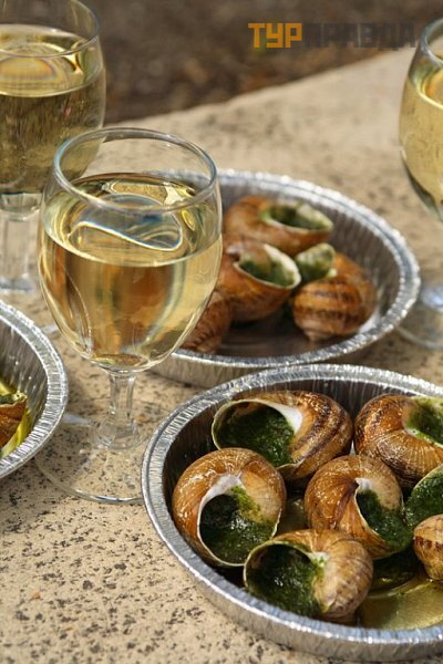 Возьмем такой продукт, как улитки. Долгое время я была убеждена в том, что это исключительно бургундское лакомство. Но на самом деле этой культурой занимаются и в Центре, и в Оверни, и в Аквитании, и в Рон-Альп и т.д. Как правило, улитки готовятся в масляно-чесночном соусе и обязательно подаются с багетом. Но бывают варианты. В Бургундии предпочитают готовить улитки без панциря в сметанном соусе. А еще с улитками получаются отменные блинчики и пироги.