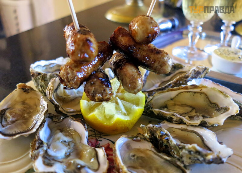 Пересматривала фотографии тура Запад Франции, сделанные моими чудесными друзьями-туристами Екатериной и Сергеем. Еще раз огромное спасибо им! Вспомнила наше душевное посещение города Бордо и окрестностей, и поняла, что в прекрасный Сент-Эмильон надо ехать исключительно в удобной обуви, дабы не совершать экстремальный спуск по его древним улочкам. ) Об этом необходимо помнить и при подъеме на Дюну дю Пила (чудо природы). Конечно же, город Бордо помимо своих прекрасных достопримечательностей, открывает туристу массу приятных гастрономических наслаждений. Традиционно для наших групп стало посещение популярного ресторана Chapeau Rouge, где в приятной обстановке за приемлемую цену можно отведать оригинальные блюда. И так как многих наших туристов, путешествующих к Атлантике, интересует дегустация устриц, хочу поделиться своим гастрономическим открытием. Оказывается, существует рецепт устриц a la bordelaise. Он отличается от традиционного. Только в этих краях, а точнее в Биаррице, я узнала, что суть этого рецепта заключается в подаче свежих устриц с жареными колбасками. Когда мне в первый раз предложили отведать это лакомство, меня это несколько насторожило. Но, к моему удивлению, такое сочетание продуктов оказалось весьма элегантным. И я настоятельно рекомендую всем, кто отправляется в Бордо: доставьте себе такое удовольствие!