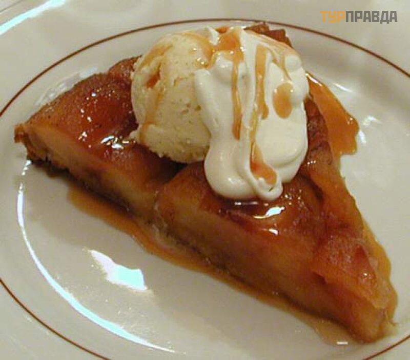 Я редко заказываю себе десерт, но если это происходит (в независимости, где во Франции нахожусь), спрашиваю, есть ли в заведении tartatin. Это яблочный пирог из Нормандии. Популярность его во всей стране грандиозна. Особенно хорош tartatin с мороженым или со сливками. Но это не единственный пирог из яблок, который можно отведать в Нормандии. Существует gateau normand aux pommes, то есть – нормандский пирог, своим видом призывающий его попробовать. Готовя пост о кальвадосе, я вспомнила о baba au calva и убедилась в том, насколько правильно французы едят: крепкие дижестивные напитки употребляют в конце еды маленькими порциями для улучшения пищеварения.