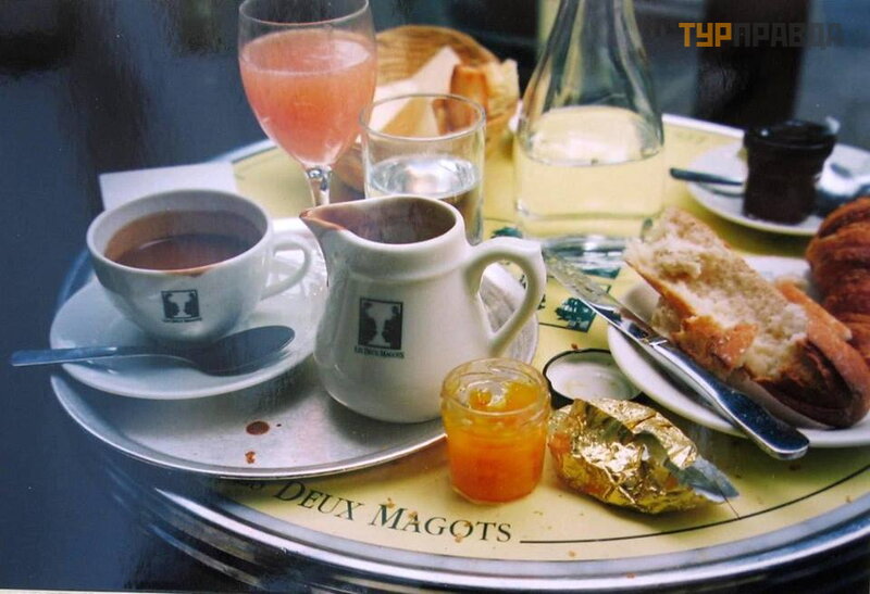 Вот и я одним прекрасным вечером после всей программы отправилась выпить чайку в “Les Deux Magots” в компании подруги. Устроившись на террасе и наблюдая за публикой в кафе на улице, мы с удовольствием погружались в элегантную жизнь квартала Saint-Germain. Обаятельный официант принес белый чайничек и сырную тарелку. Съев по кусочку деликатесного сыра, мы решили разлить чай по чашкам. К большому удивлению мы обнаружили, что в чайнике просто горячая вода. Этой информацией мы поделились с нашим очаровательным официантом. Он, в свою очередь, безусловно, огорчился (это был настоящий спектакль), а затем изящно поместил шелковый мешочек в чайник. Это было неподражаемое представление! Мы пришли в полный восторг от этой естественной элегантности (французские официанты непринужденные). Мы провели прекрасный настоящий парижский вечер в знаменитом кафе. Покидая заведение, мы услышали: “Mesdames, до завтра”. Мы бы с удовольствием, но на следующий день мы уезжали...