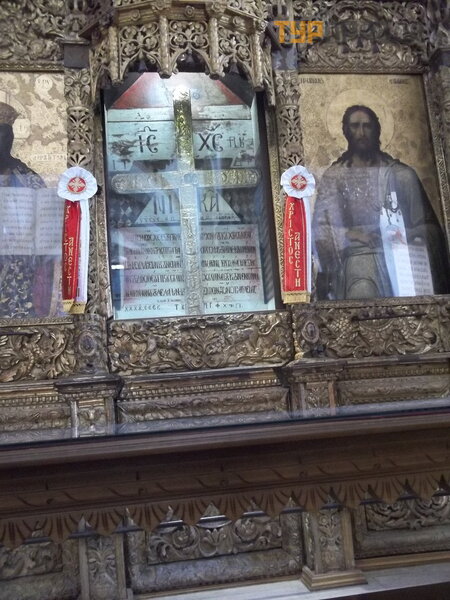 Реликвии спрятаны за маленькой дверцей, которая находится в середине оклада креста: