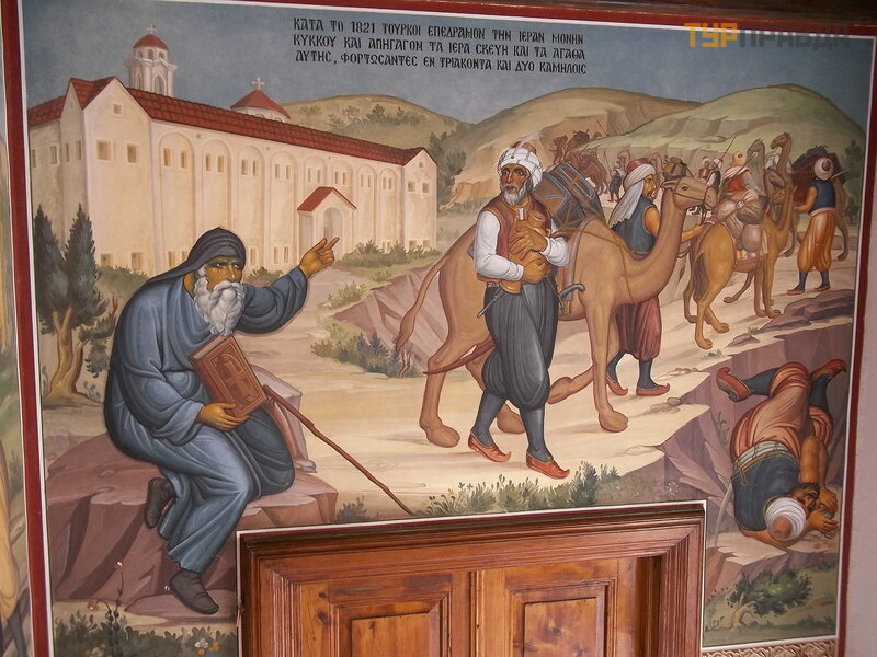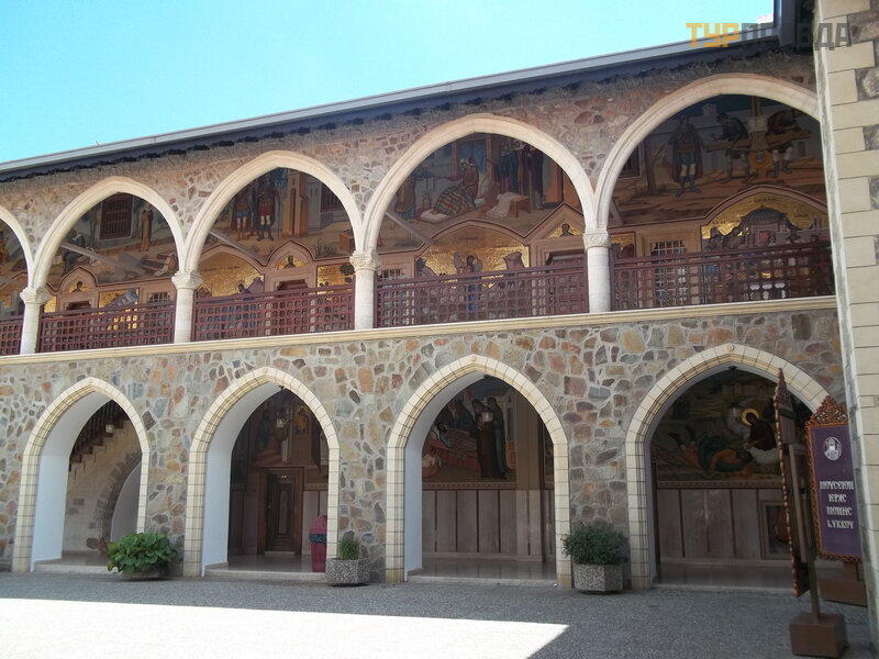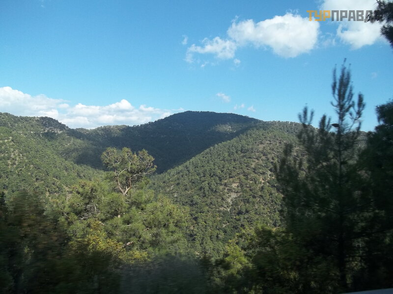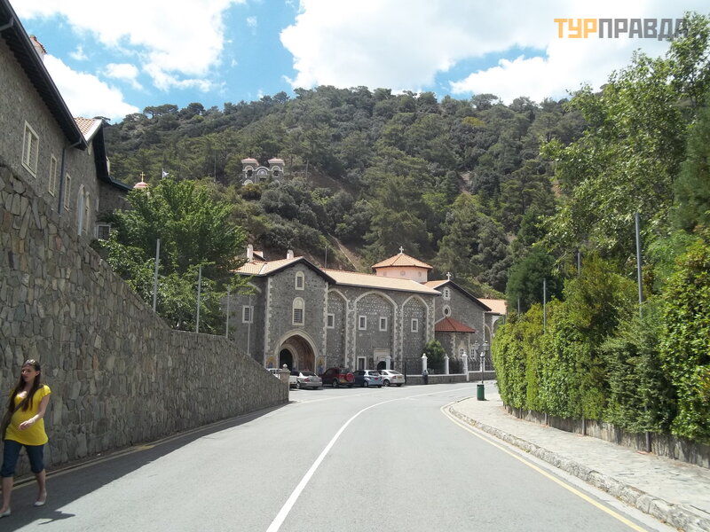 «Далее, через лес и горные деревушки мы направимся в северную часть Троодоса, где располагается Киккос – самый главный и богатейший монастырь Кипра, где хранится икона Святой Богородицы, авторство которой приписывается апостолу Луке. В свое время послушником монастыря был первый президент Кипра Макариос, тело которого позднее захоронили недалеко от монастыря.»