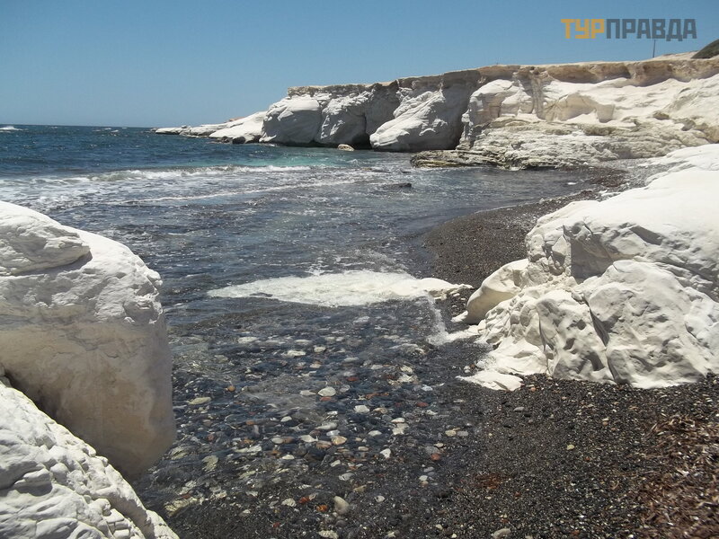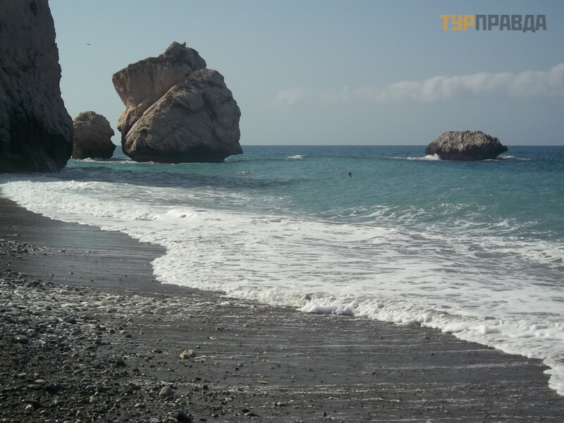 Дно каменистое, волны. Неудобно, наверно, было Афродите выбираться на берег. Мифы и легенды пересказывать не буду.
