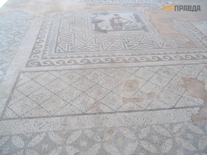 А копия этой мозаики тоже находится на территории археологического парка. Мария разыскала «дом Леды» (место, где мозаику нашли). Первоначально «Леда и лебедь» украшали мозаичный пол (2-3 вв. н.э.):