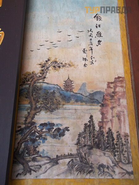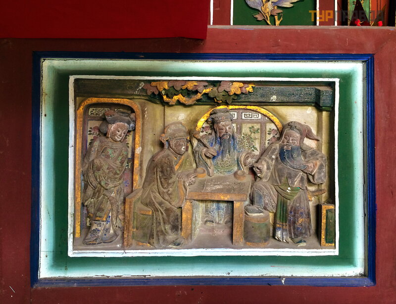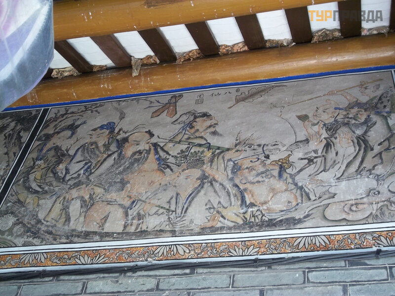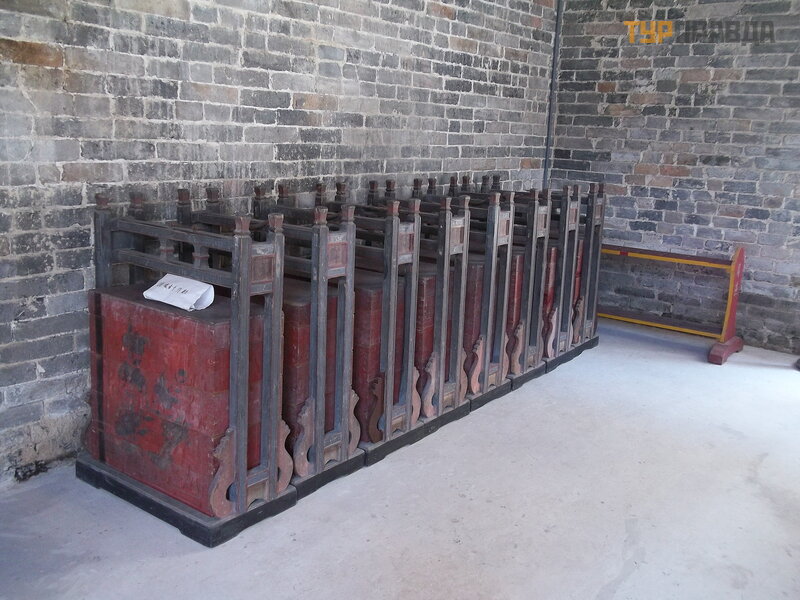 Обратная сторона входа. В этом важном Зале есть смотритель (сидит). Приподнятая красная дорожка, ведущая от входа, свидетельствует о том, что в глубоком прошлом представитель клана Тань занимал высокий пост в империи: