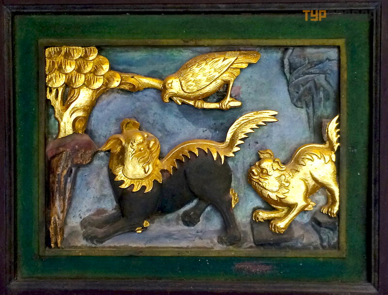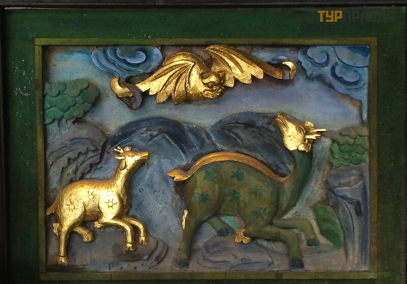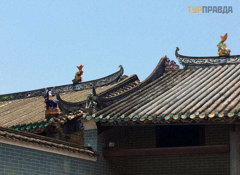 Крыши украшены керамическими фигурами, в частности, «драконо-рыбами»: