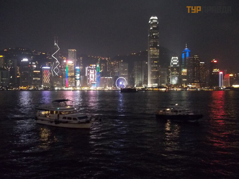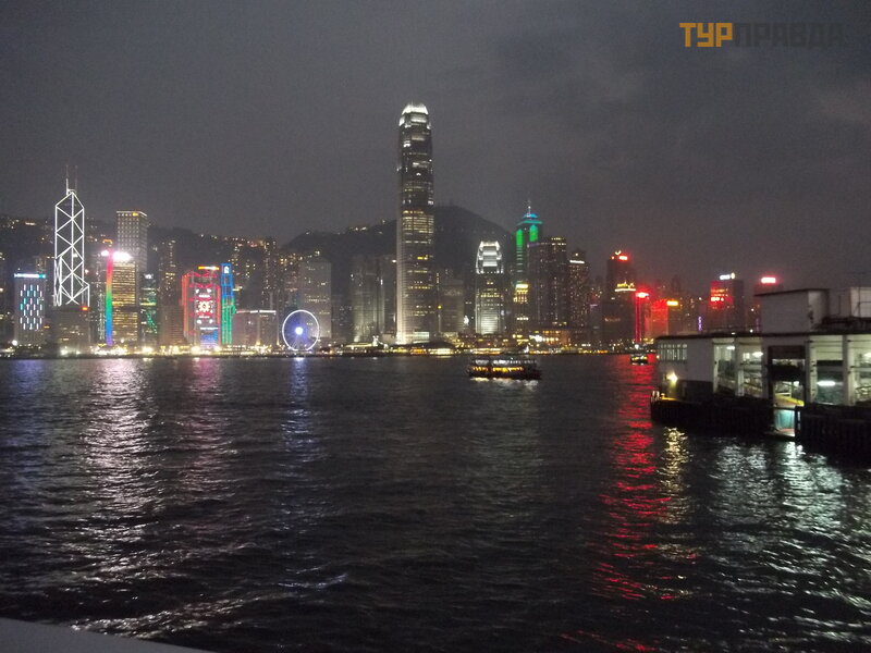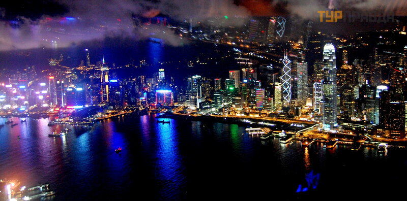 Все места возле окон были заняты. Но вечерний Гонконг рассмотреть было можно. Вид как-то отличался от этого рекламного (фото из интернета):