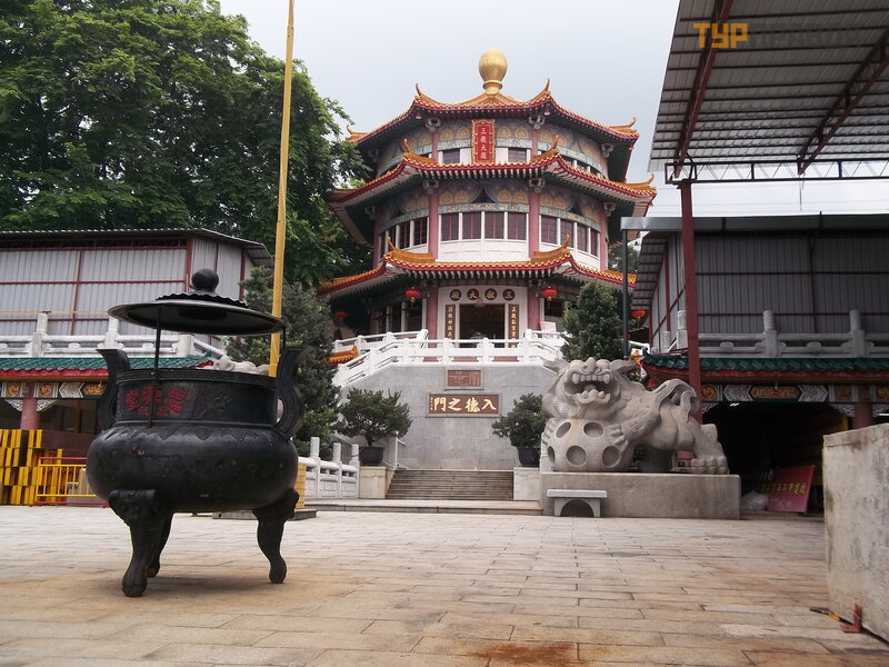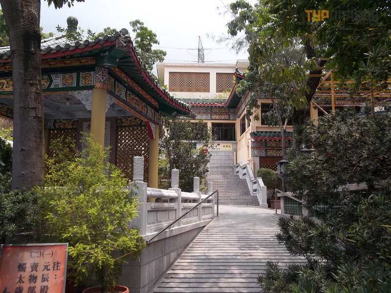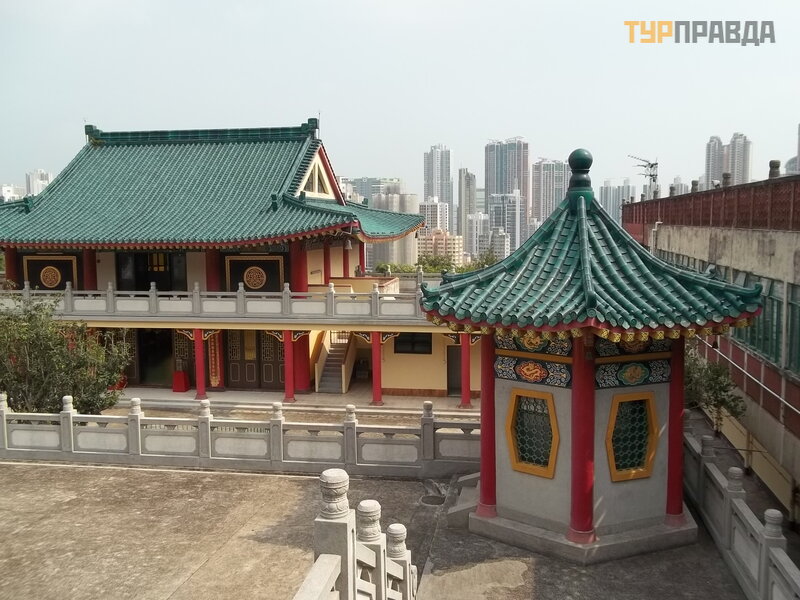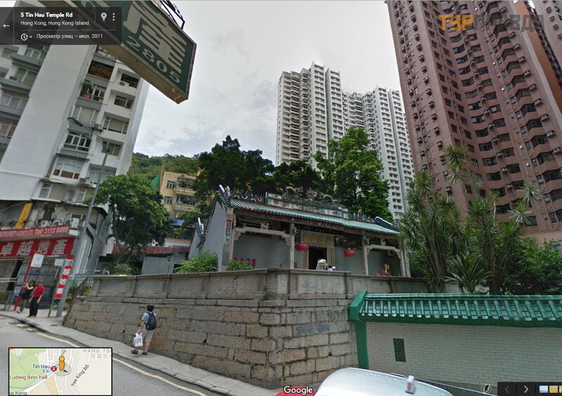 На такси и метро быстро добрались до последнего храма – Тинь Хау. Он расположен на острове Гонконг и «зажат небоскребами»: