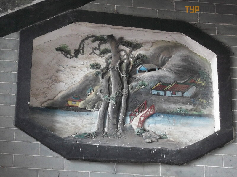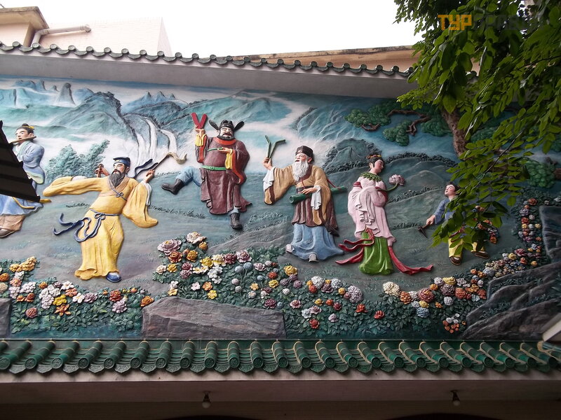 На украшенной керамикой стене изображены Бессмертные, почитаемые в даосизме: